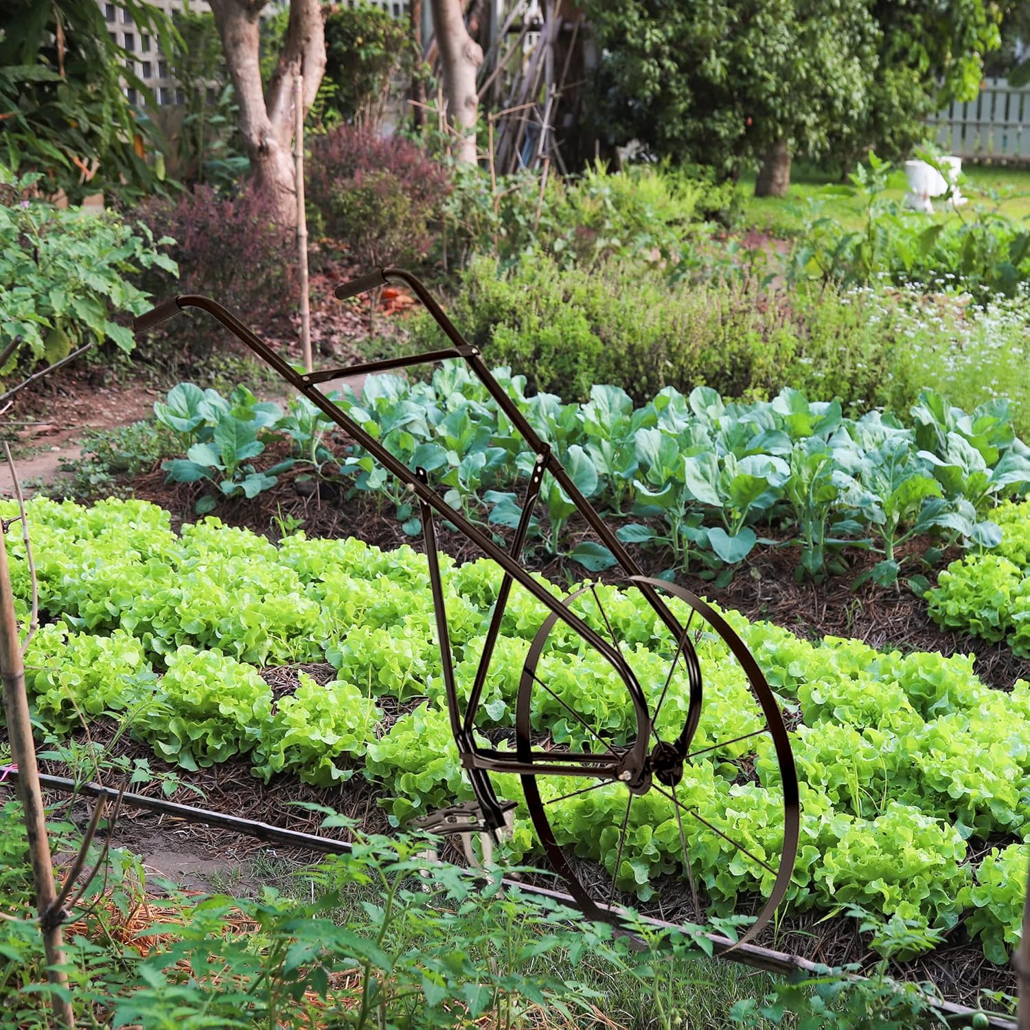 EarthWay 6500 High Wheel Tubular High Wheel Cultivator with Comfort Handle with 3- Position Adjustable, Quick Change Implements, and 24 Inch Steel Wheel