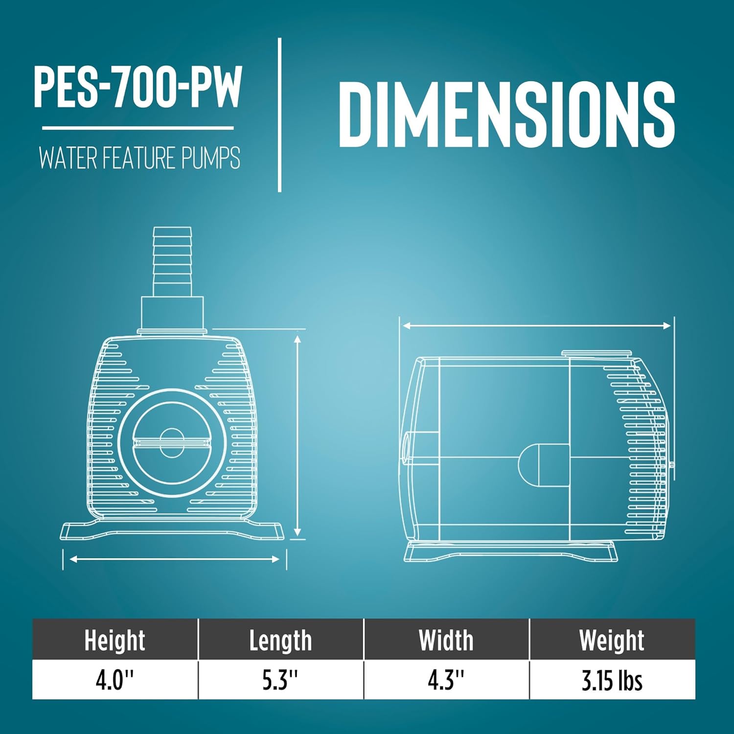 - APPLICATIONS: designed for water fountains and ponds up to 725 gallons, hydroponics and other water transfer applications