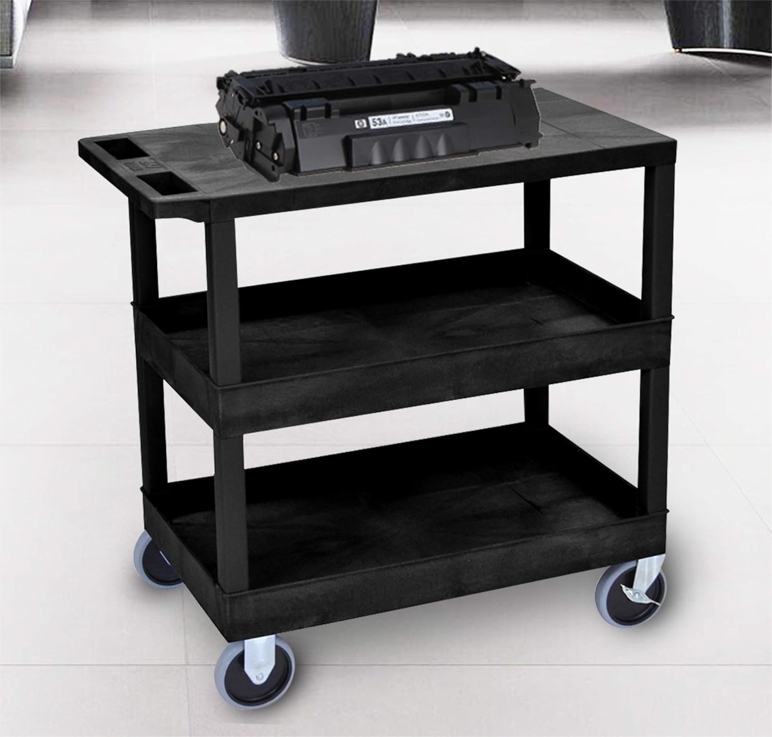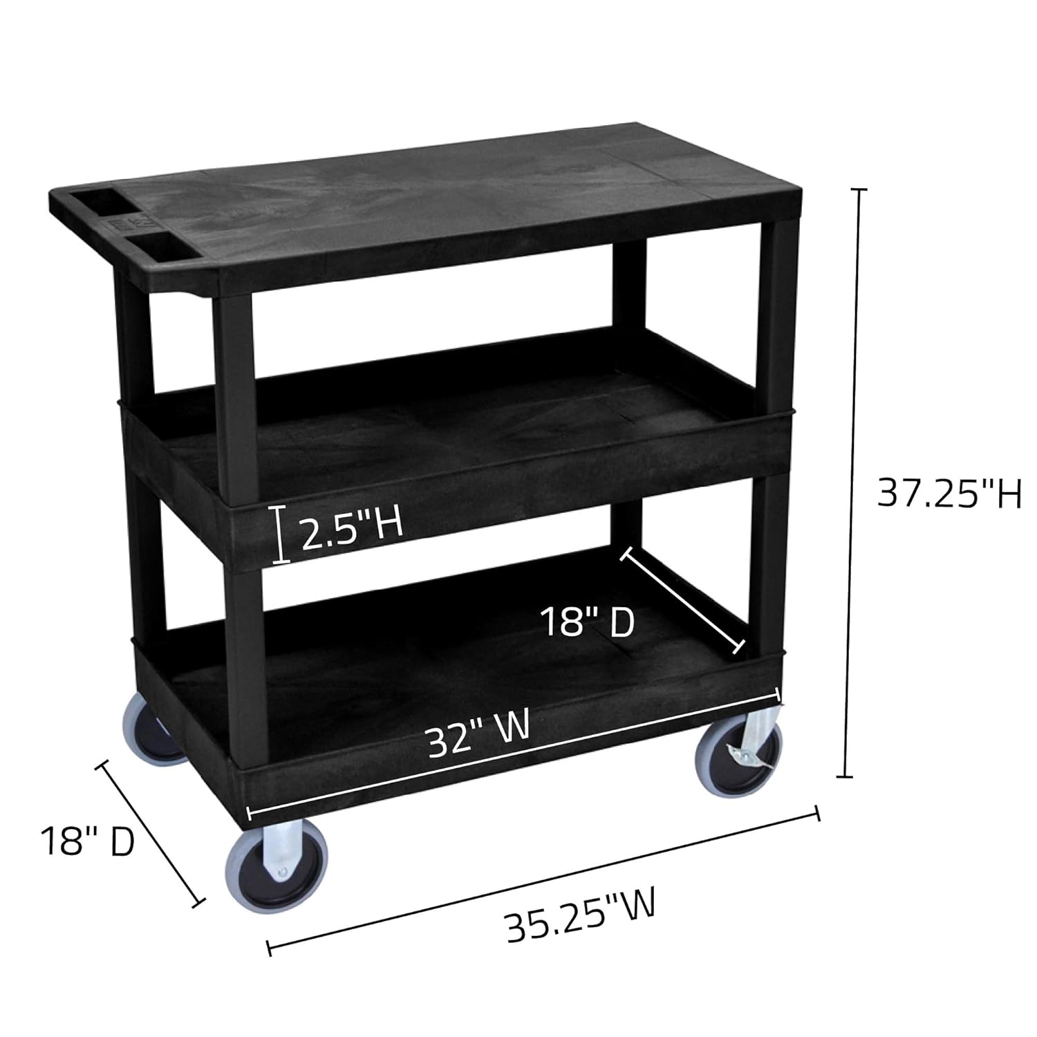 LUXOR EC211HD-B 32" x 18" Cart - Two Tub/One Flat Shelves
