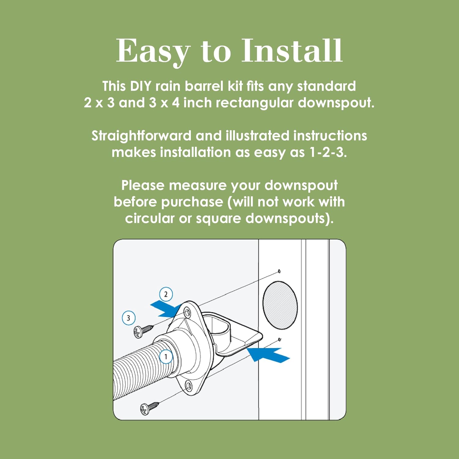 - Smart Design - this rain barrel kit allows you to attach a rainwater collection system without removing the downspout! Works with standard 2 x 3 inch and 3 x 4 inch rectangular downspouts. Water capture rate may be reduced with 3 in. x 4 in. downspouts
