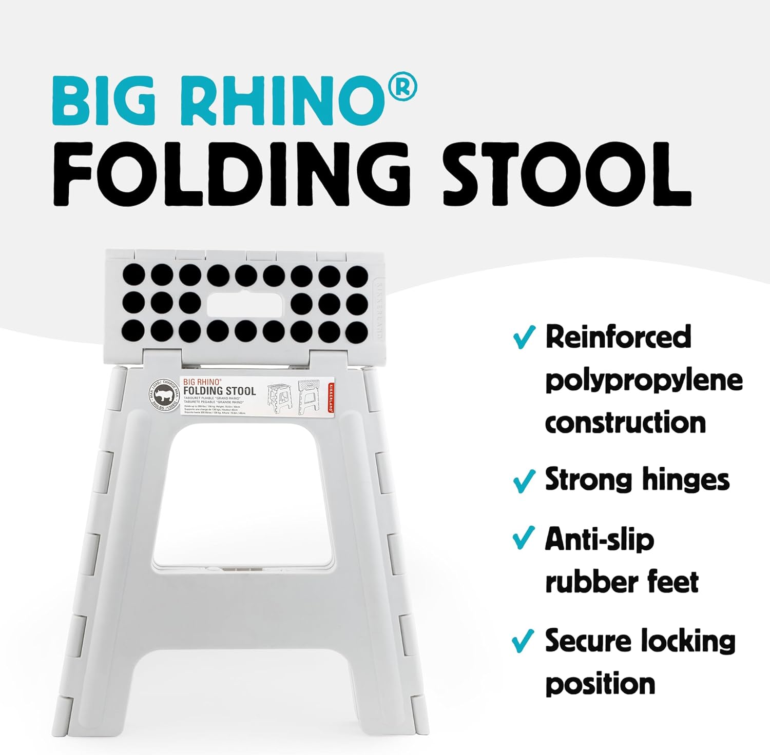 - Reinforced Construction, Anti-Slip Design: Built to last, the Rhino Step Stool features strong hinges for extra support, a polypropylene construction for durability, and an anti-slip rubber base for foot stability