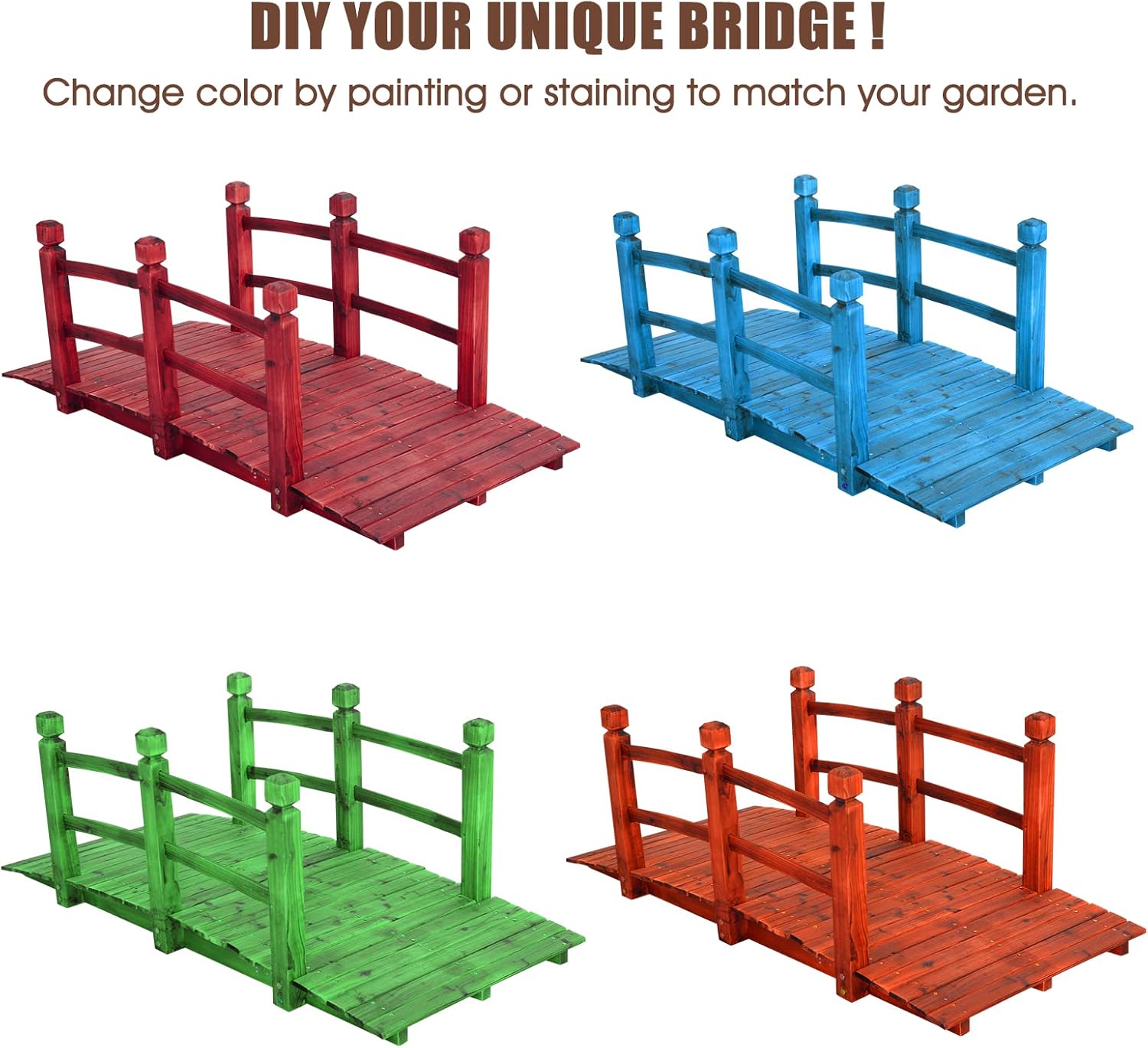 - 〖Multifunctional Outdoor Garden Bridge〗 Our decorative garden bridges are perfect for outdoor usage. Garden bridges 5ft allows you to shuttle through flowers, creeks and streams, creating a unique passage. It can also be placed on top of the fish pond and fed to small fish. Enjoy the beautiful scenery of the patio or backyard with this bridge, and enjoy your outdoor life.