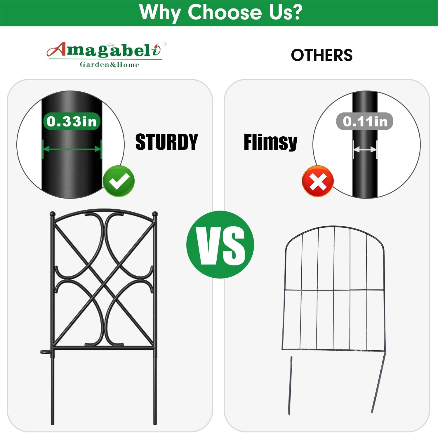 AMAGABELI GARDEN & HOME 10 Panels 24in(H)×10ft(L) Decorative Garden Fences and Borders for Dogs Rustproof Metal No Dig Fence Panels Garden Edging Border for Animal Barrier Flower Beds Yard Patio