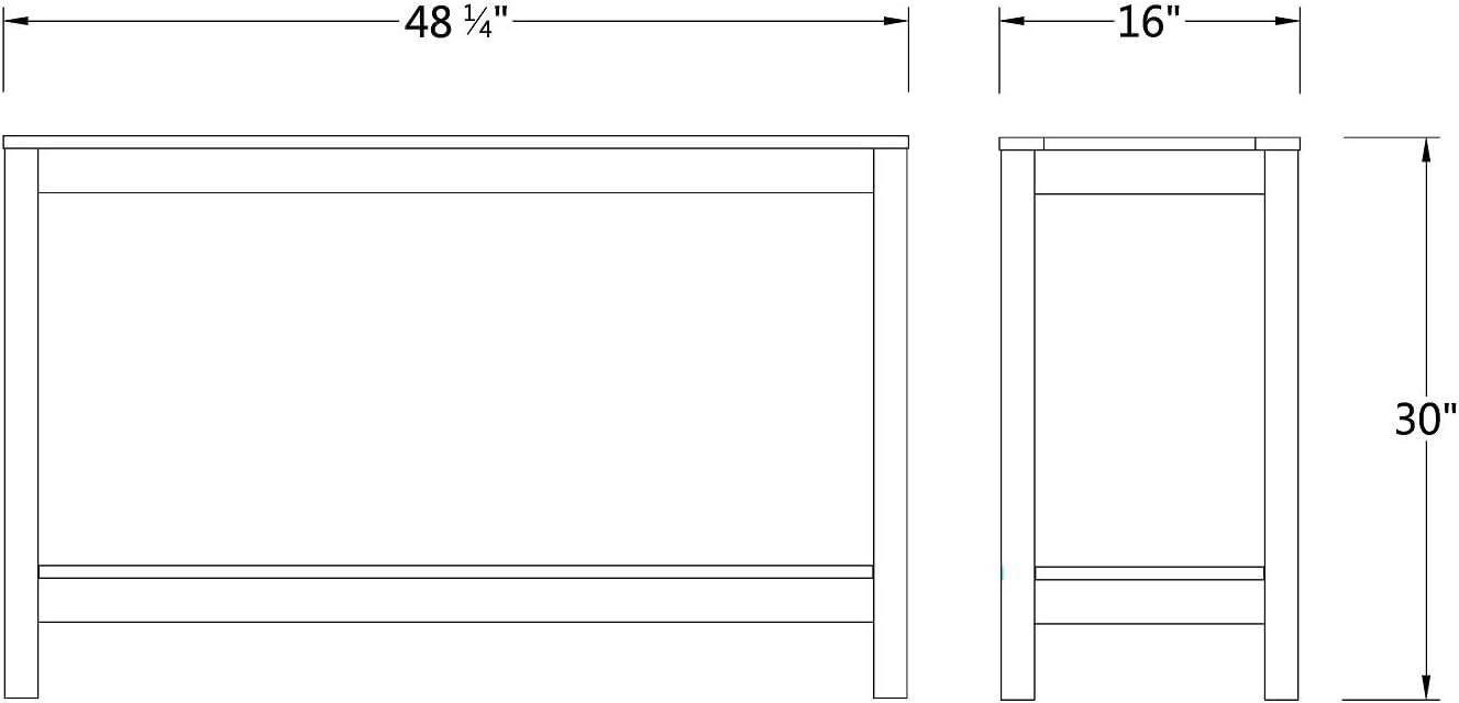 - Dimensions: 48.25 in. L x 16 in. W x 30 in. H