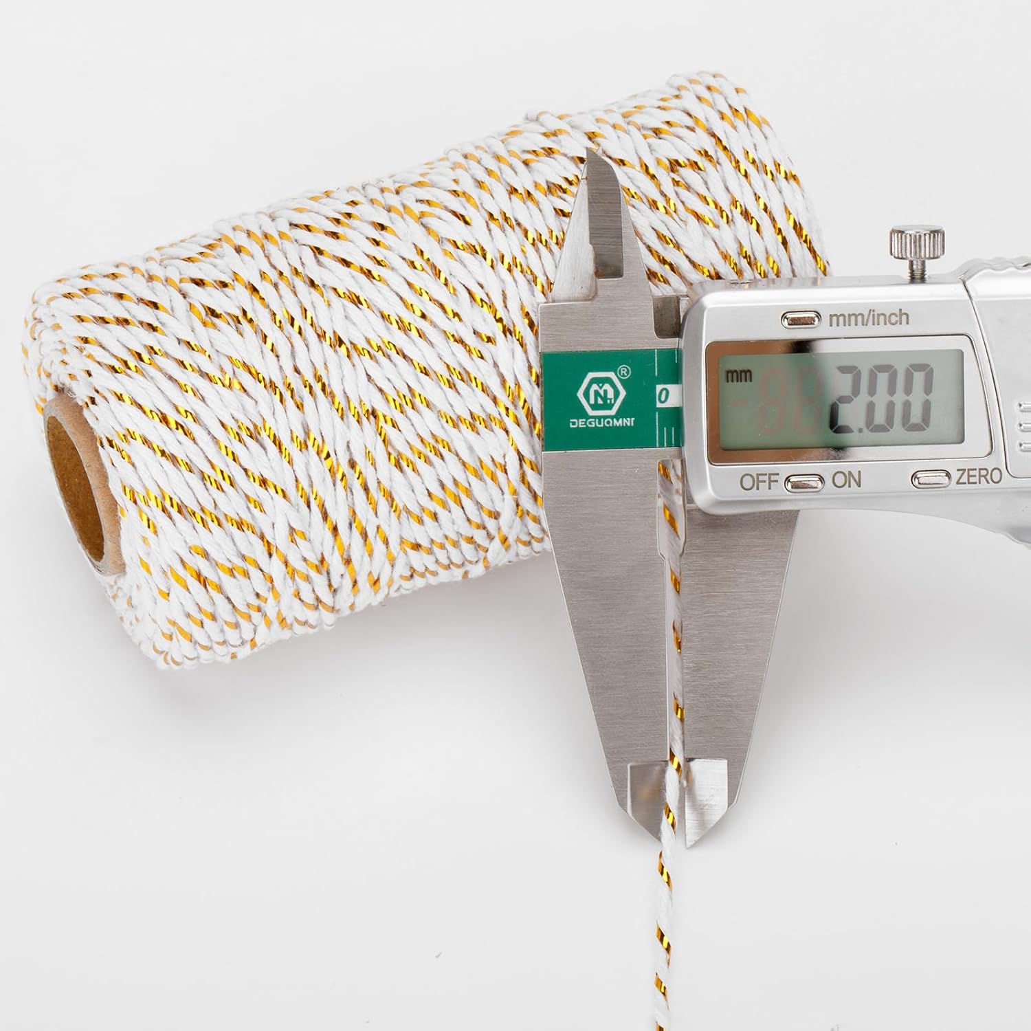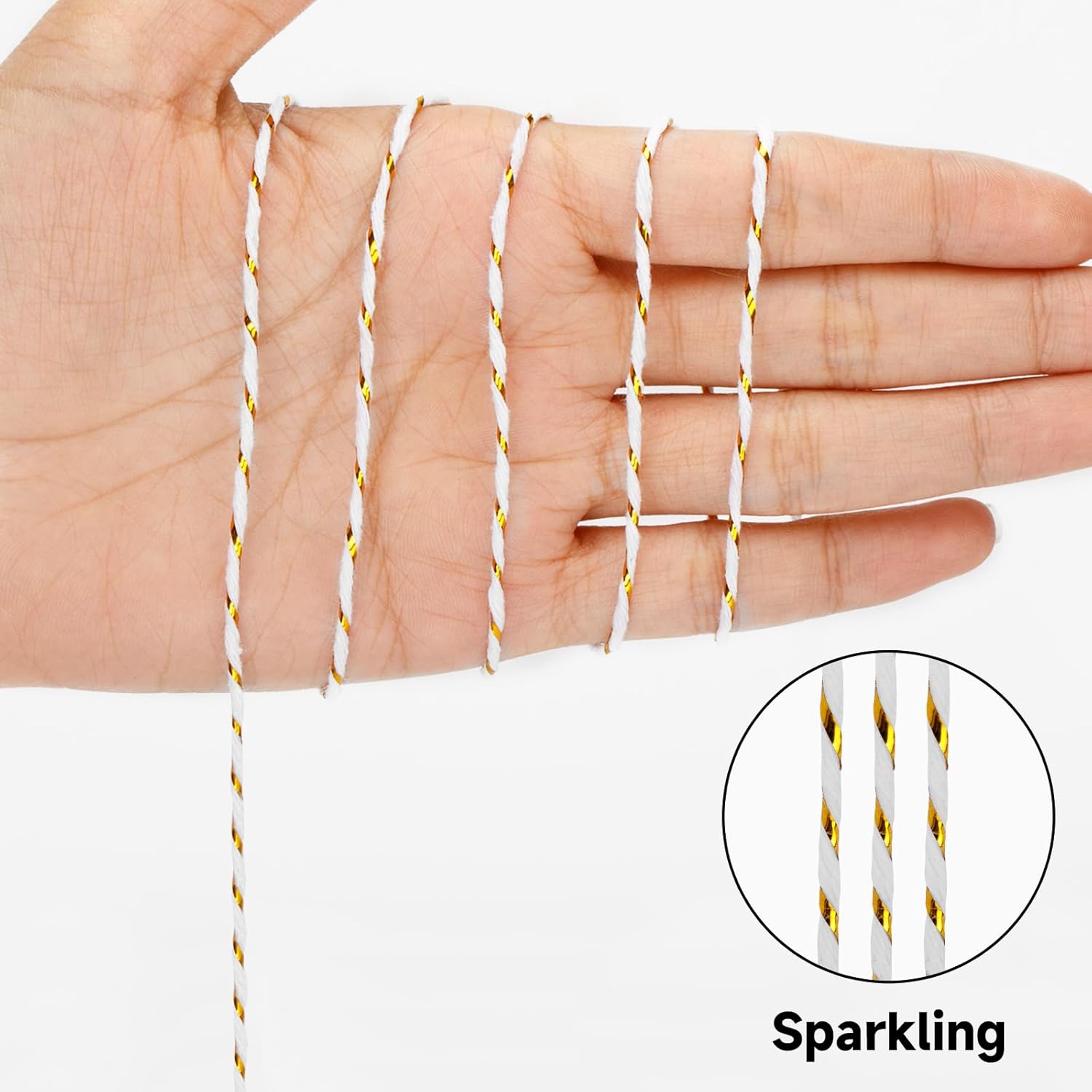 328 Feet Cotton Bakers Twine, Gold Metallic Wedding & Holiday Twine
