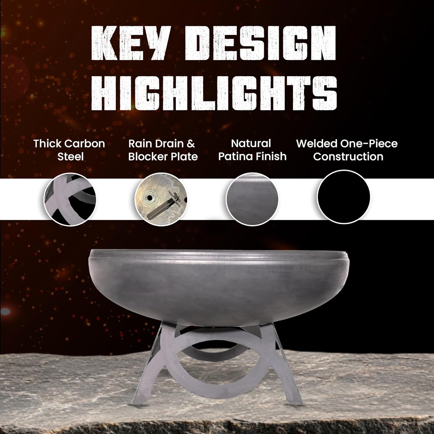 Liberty Fire Pit – Ohio Flame Wood Burning Outdoor Fire Pit - 24" Diameter with Curved Base (Made in USA)