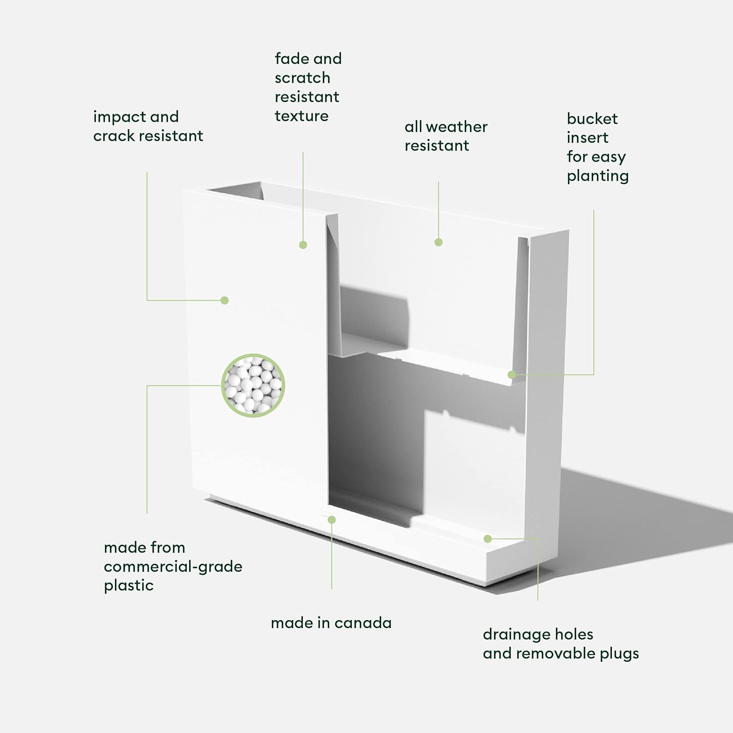 - Floor Standing Planter: Tall, rectangular planter stands on its own for easy placement and use.