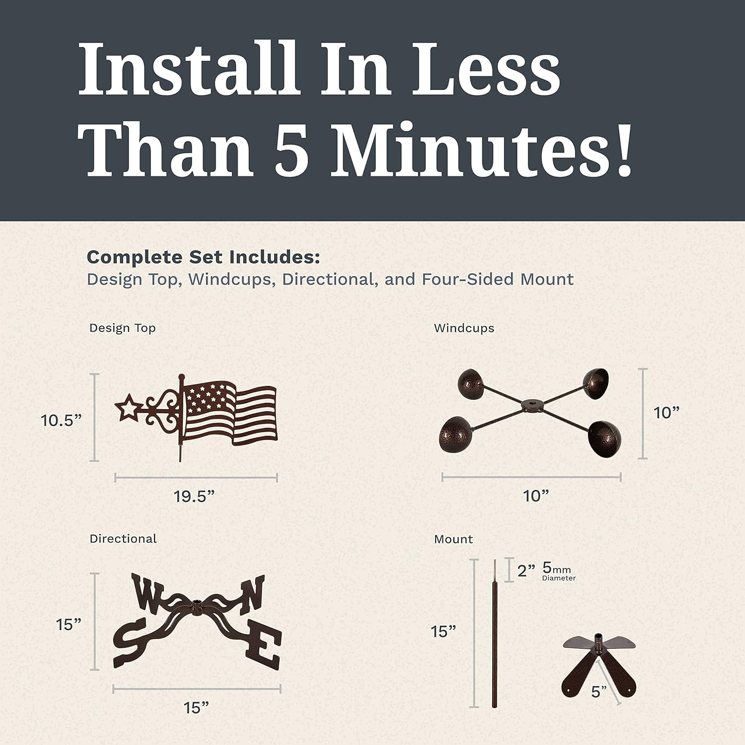 EZ Vane Steel USA Flag Weathervane 21” Height, Includes Metal 4-Sided Mount, Wind Cups & Brackets | Hand-Crafted and Family-Owned, Made in The USA with Triple Powder Coating, Limited