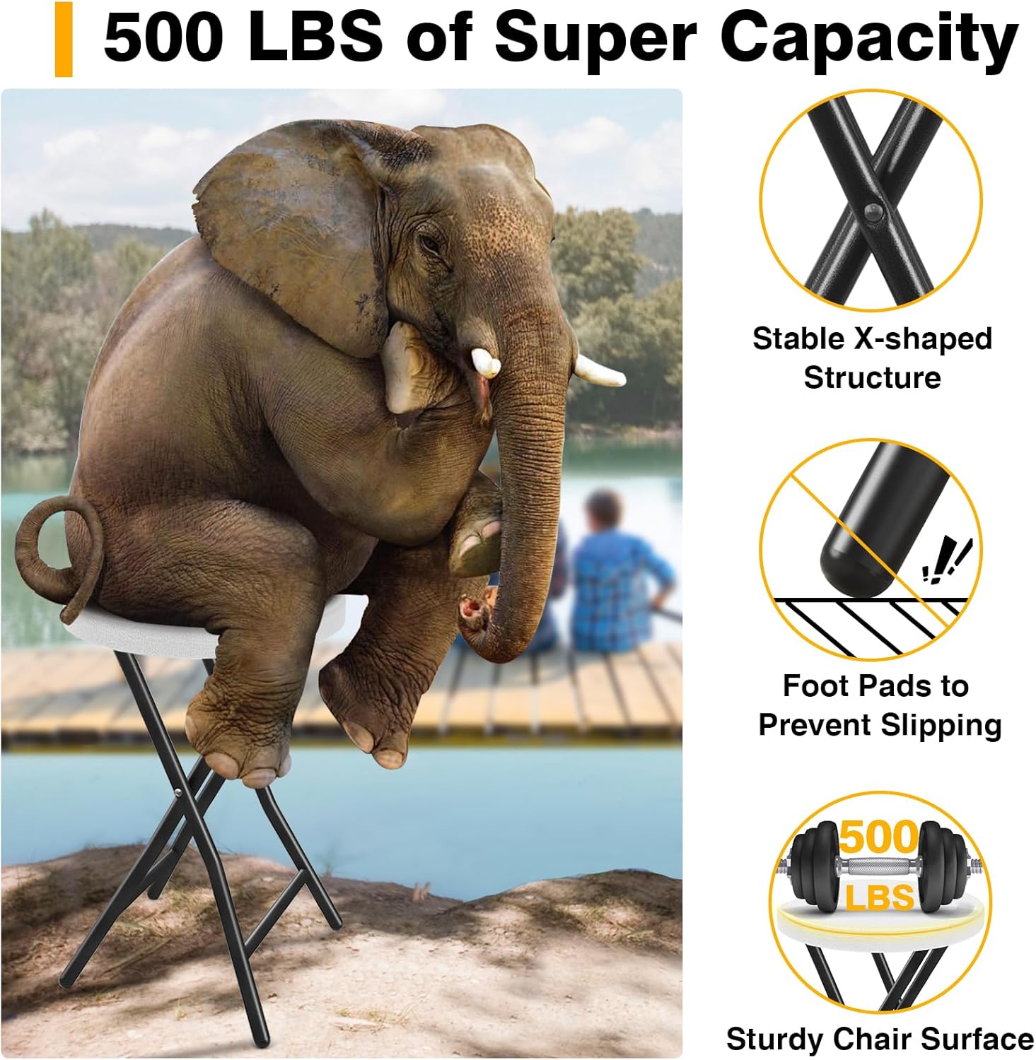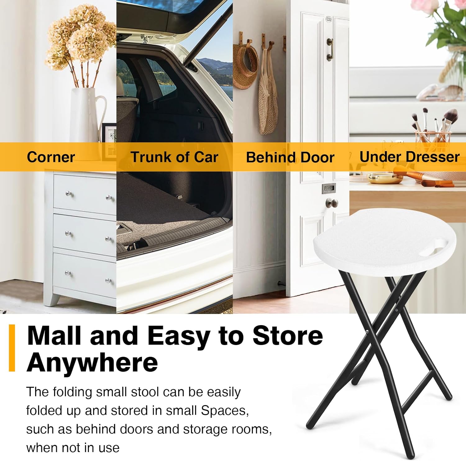 TAVR Furniture Portable Folding Chair with Handle, Heavy Duty Round Fold Stool Chair with 500lbs Capacity for Adults, 18 Inch Foldable Stool for Dorm, Kitchen, Vanity, Church and Outdoor use