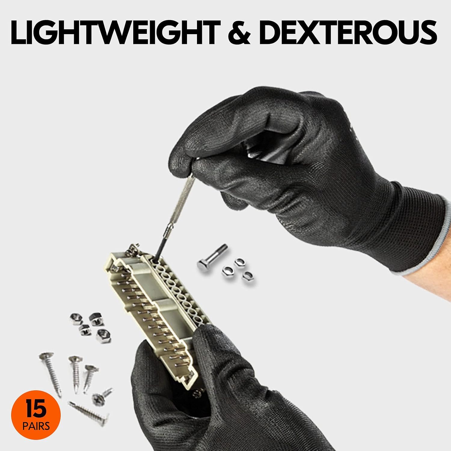 Vgo... 15-Pairs Safety Work Gloves, Gardening Gloves, Polyurethane Coated, Dipping Gloves, Latex Free (Size XL, Black, PU2103)