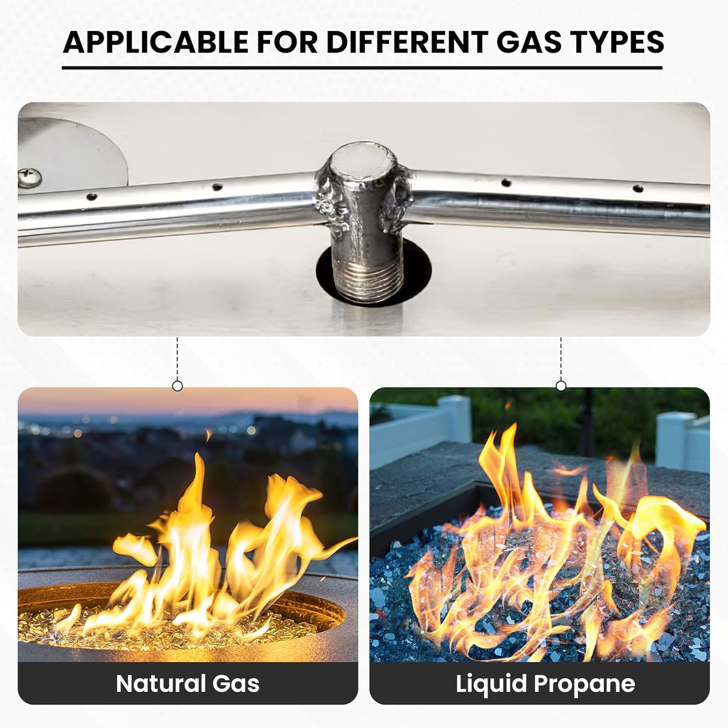 Stainless Steel Fire Pit Burner Pan & Ring, Works with Liquid Propane or Natural Gas, 22-Inch Pan, 18-Inch Ring, 150,000 BTU Max