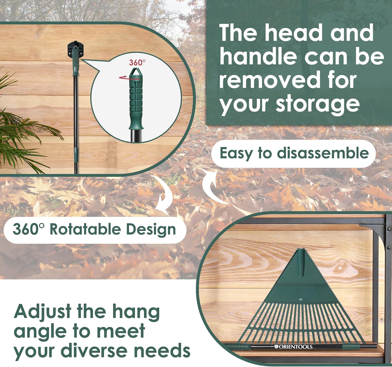 - MULTIFUNCTION HANDLE: Our garden rake can adjust the handle from 42 inches to 60 inches. By adjusting the height of the handle, you can customize the length of the handle to your needs, thus providing optimal comfort and convenience during use. The non-slip grip can rotate 360 degrees and hang up conveniently.