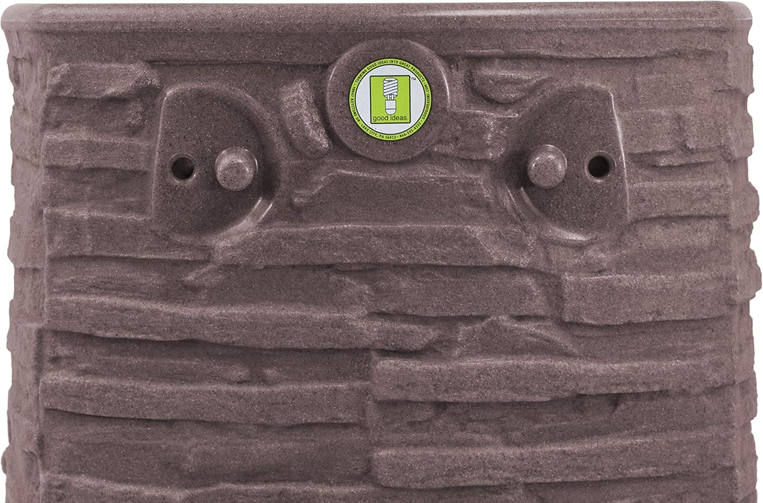 Good Ideas Impressions Riverwalk Rain Water Collection Barrel, Red Brick, 50 Gallon - Faux Slate Rock Rainwater Catcher, Plastic Storage Drum with Dual Robust Metal Spigots & Fine Mesh Screen