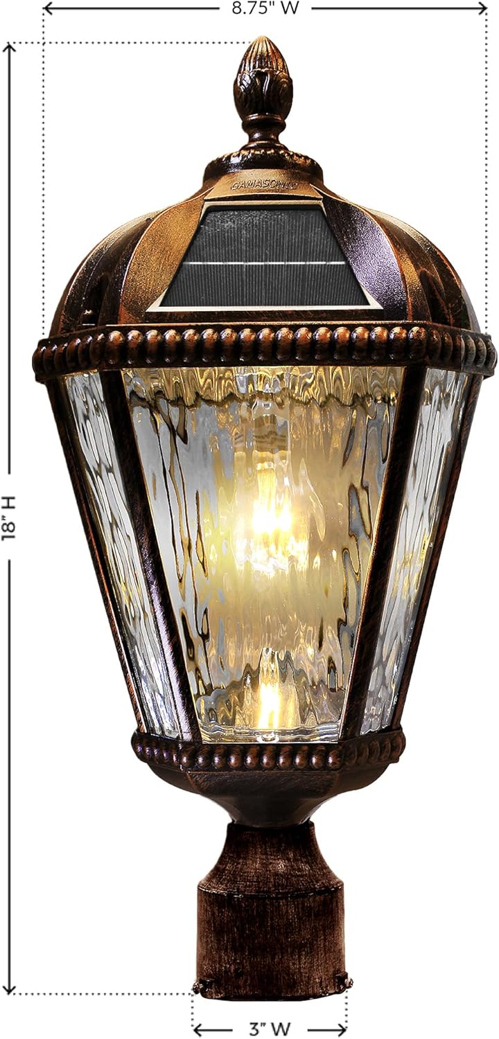 Gama Sonic Outdoor Solar Post Light, Brushed Bronze Finish Aluminum, Royal Bulb, Clear Rain Glass, 3-inch Fitter for Lamp Posts 98B112 (Upgraded Panel and Battery)