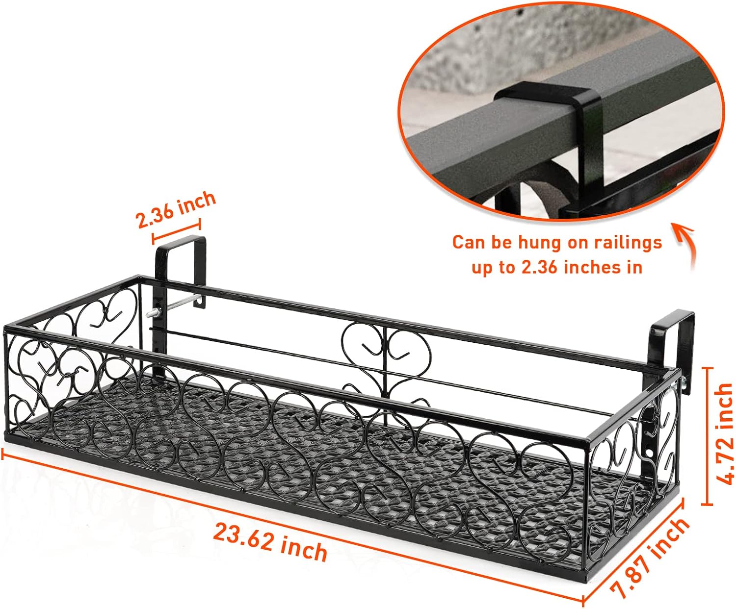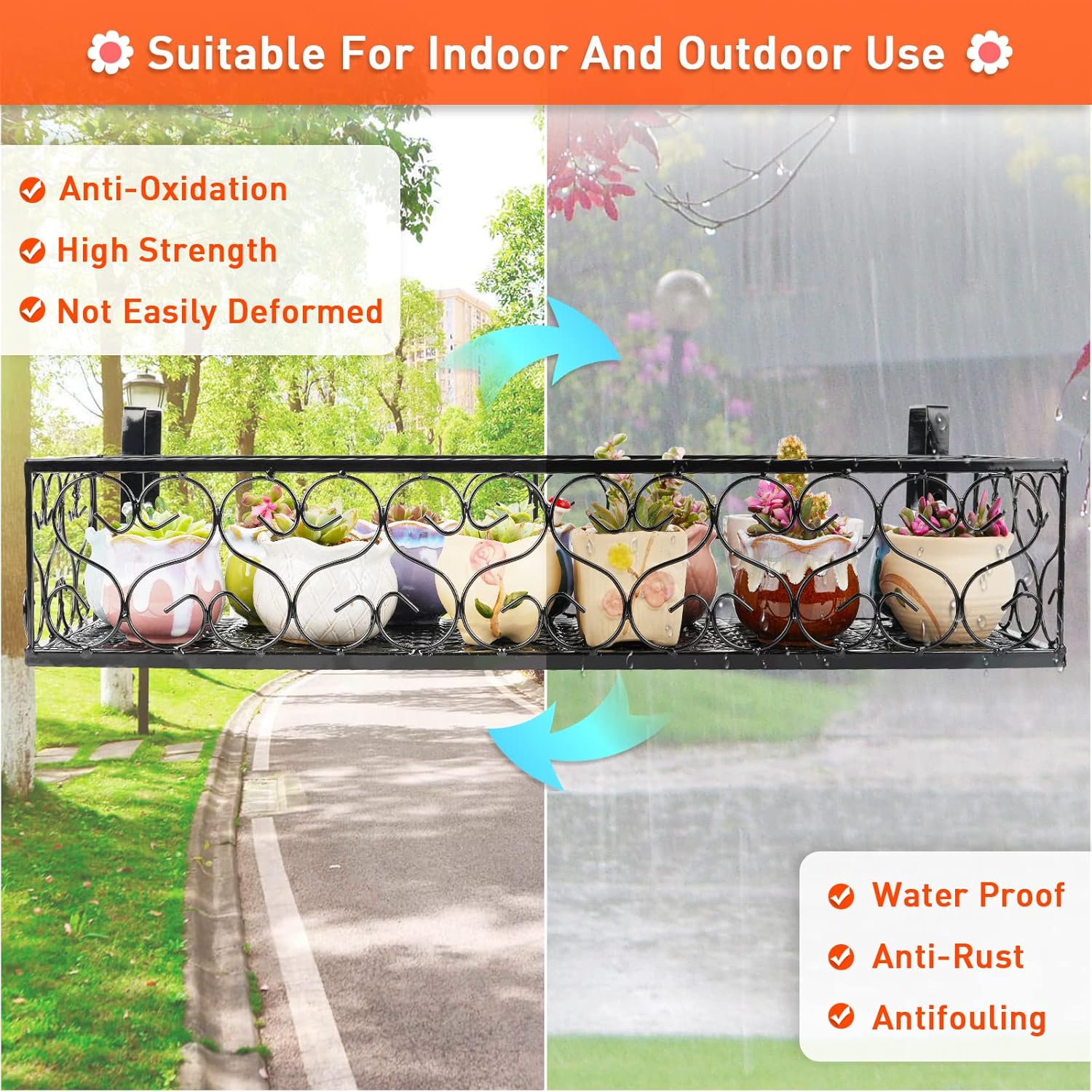 Balcony Flower Pot Stand Rack Patio Railing Shelf Plant Pots Holder Windows decorate (L, Black)