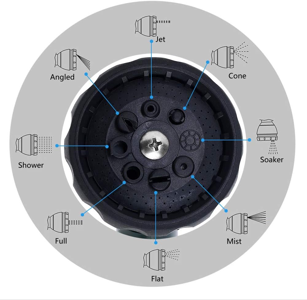 - ADJUSTABLE SPRAYER PATTERNS. GREEN MOUNT garden hose wand has 8 adjustable watering patterns: Jet, Angled, Full, Soaker, Mist, Flat, Cone and Shower. Use the 'flat' to pressure wash the debris off the patio, the 'jet' to water things across the yard, the 'soaker' to water potted plants, the 'shower' to water the lawn, the ‘mist’ to water flowerbeds and seedbeds. This spray wand does the entire garden effortlessly