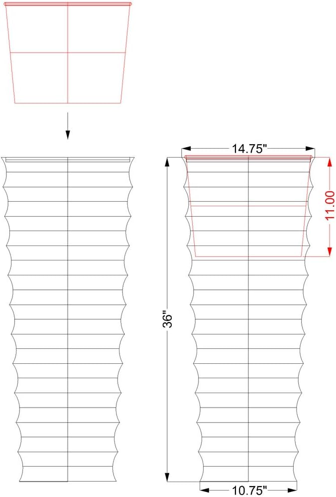 - Planter Dimensions: Large indoor outdoor flower planter is approximately 15 inches square at widest and 36 inches high, base of planter is 10.75 inches wide and depth of planter insert is 11 inches, drip tray approximately 13”square and 1.5” deep..