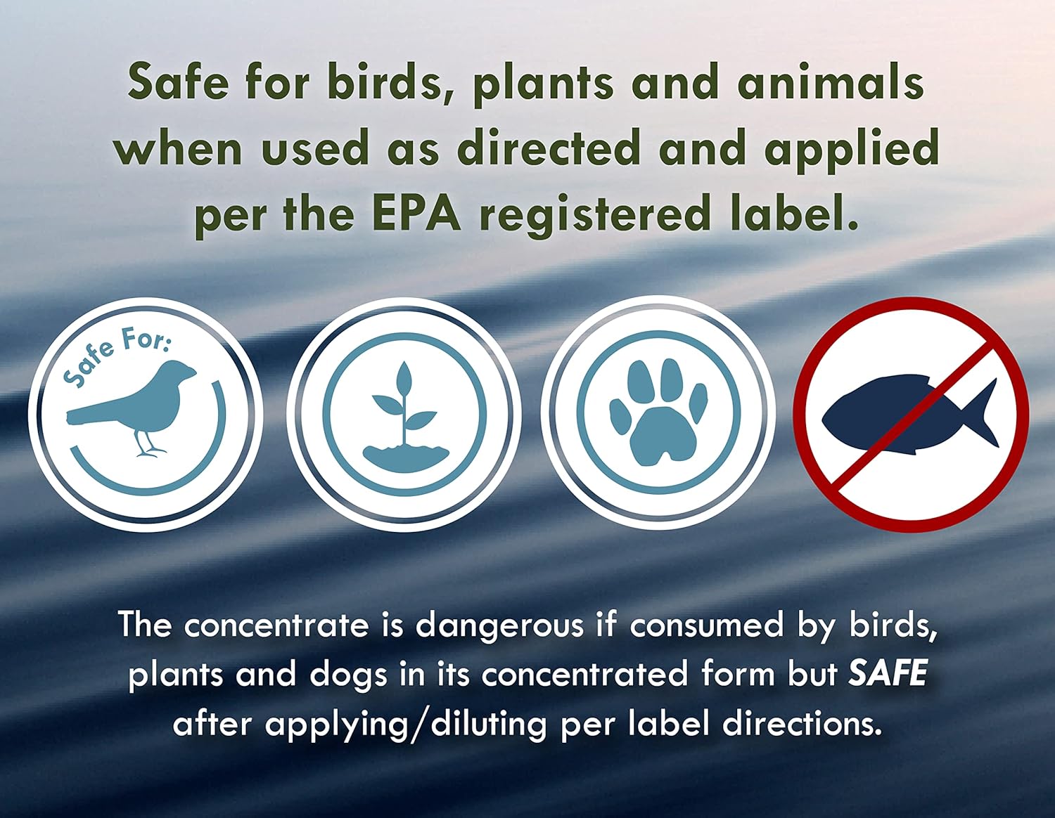 - Use only as directed to keep water safe for pond plants, surrounding wildlife and pets. Not safe for fish.