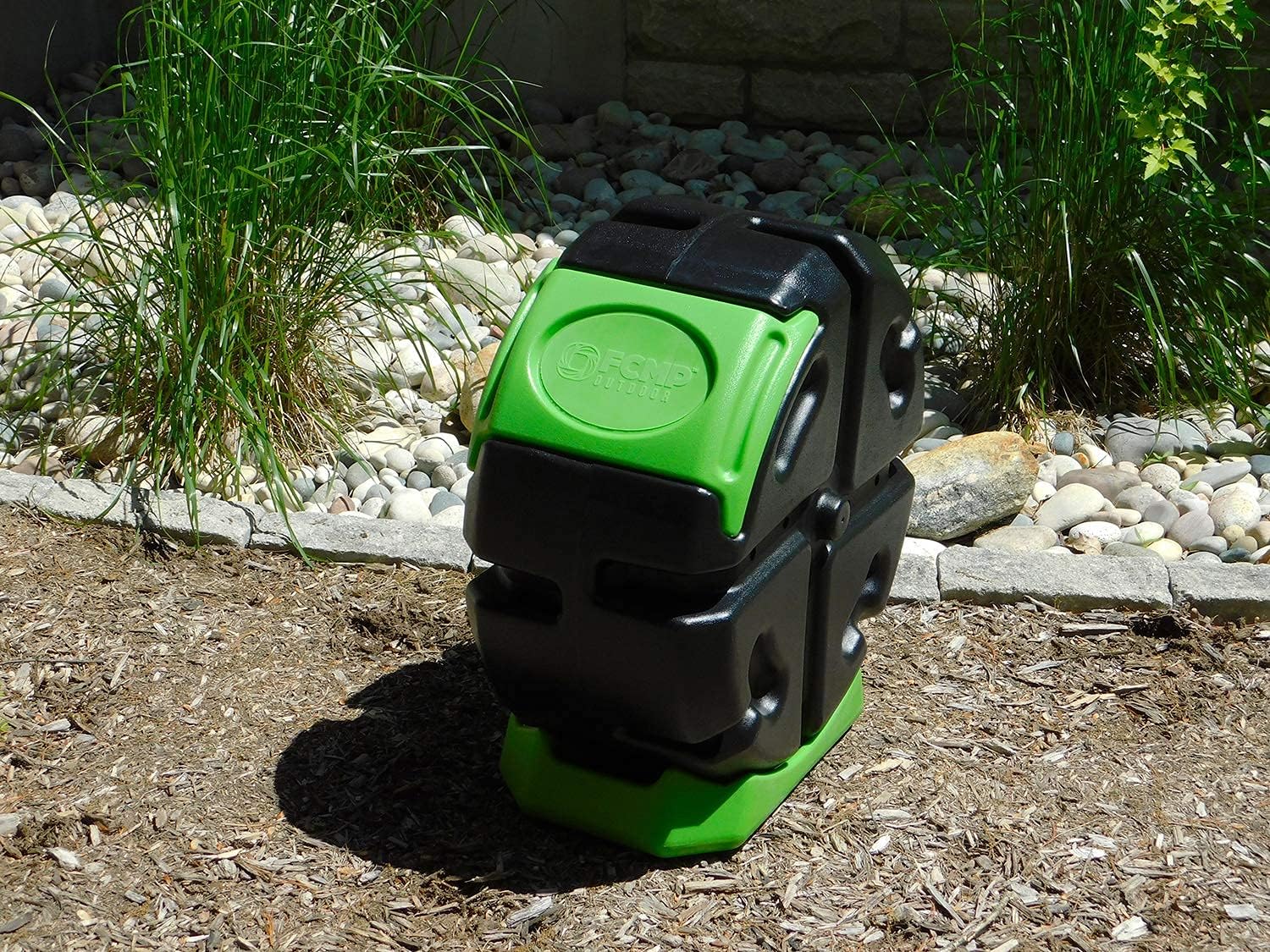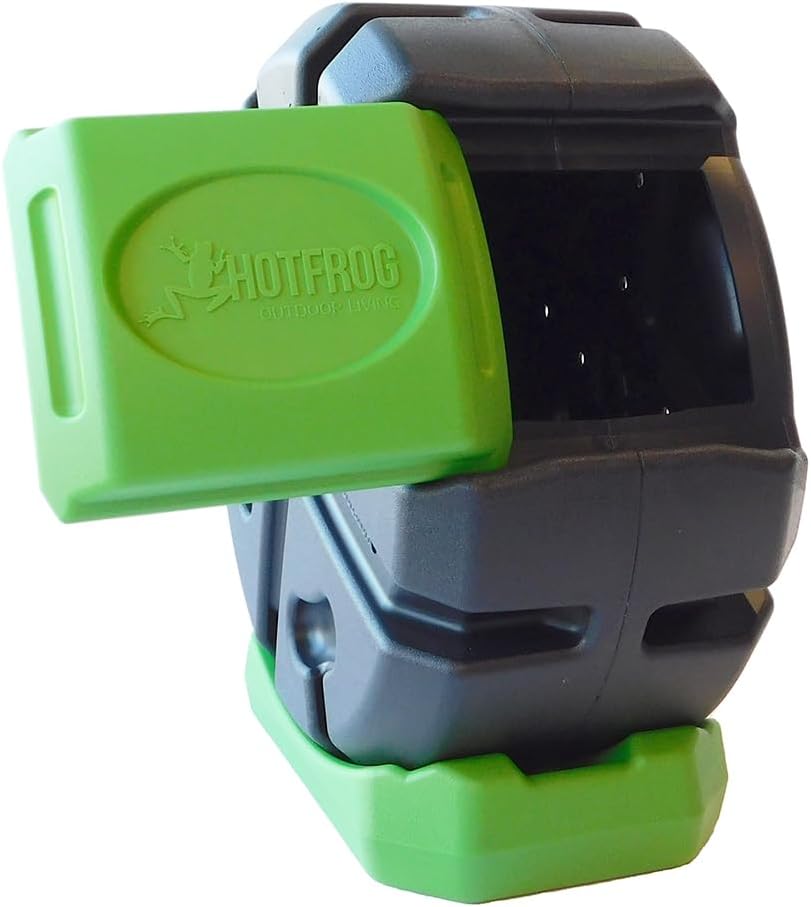 FCMP Outdoor HOTFROG Half Size Rolling Single Chamber Batch Tumbling Composter - Outdoor Rotating Garden Compost Bin (HF-RC2000WB-GRN) Black & Green (19-Gallon)