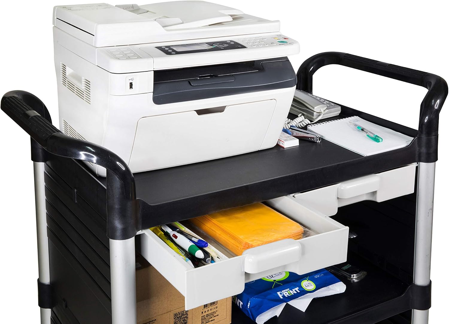 JaboEquip 3 Tier Heavy Duty Utility Cart, Lockable Medical Cart, 606 lbs Load for Lab, Hospital, Office, JB-3KD1, Black