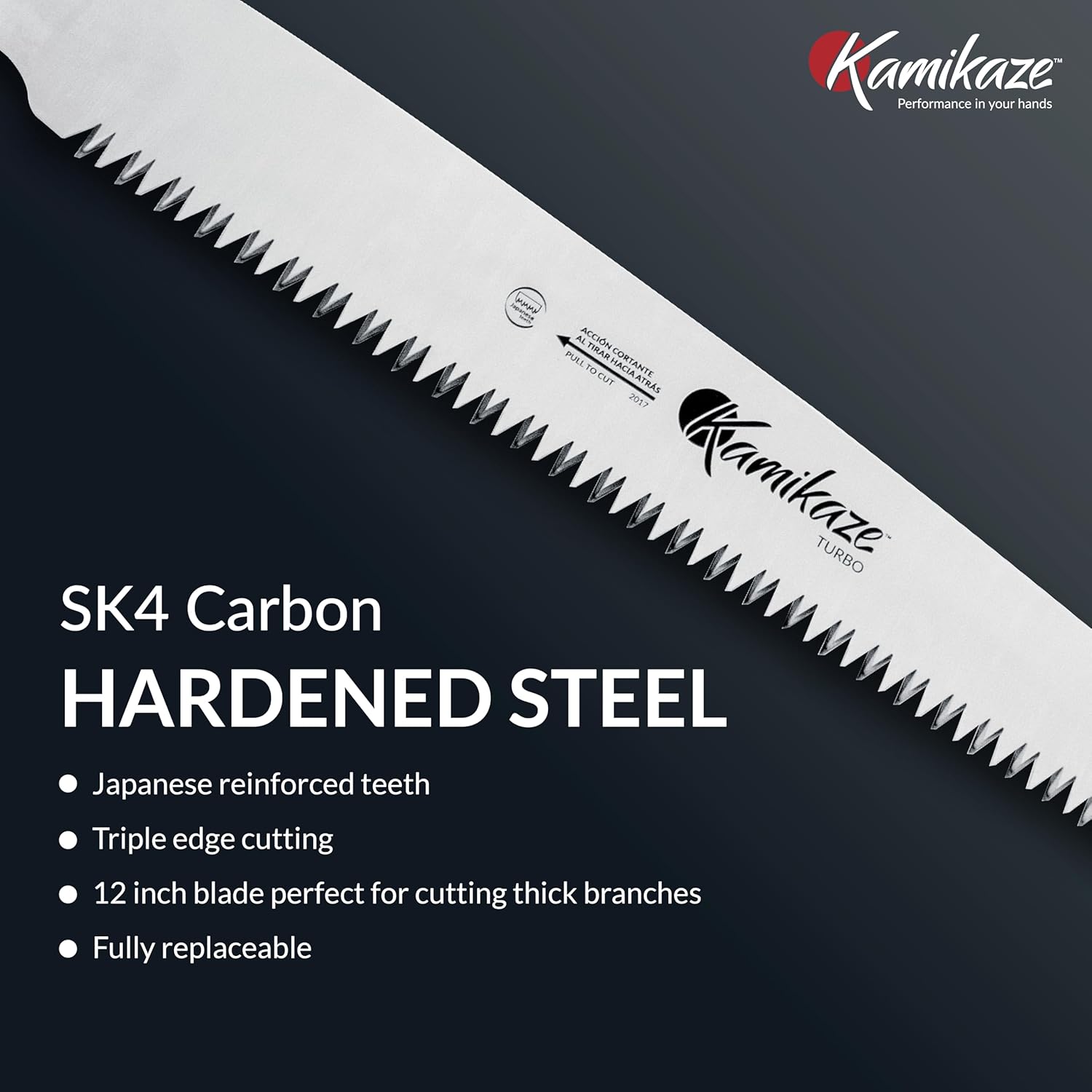 EZ Kut Kamikaze Straight Blade Pruning Saw – 18" Heavy Duty SK5 Carbon Steel – Japanese Pull-Cut Technology – Ergonomic Anti-Fatigue Grip – Tree Trimming Hand Saw with Scabbard