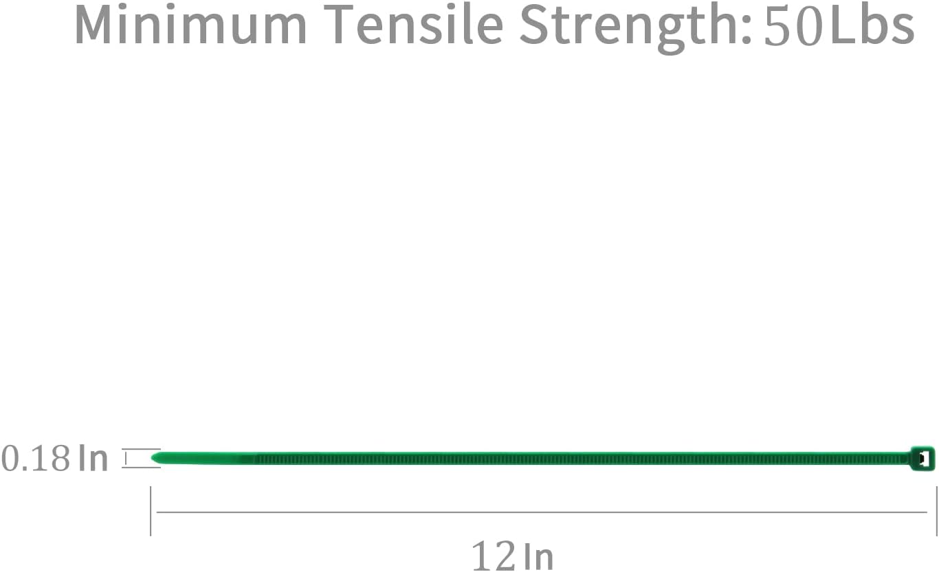 XINGO 100PCS Cable Zip Ties Heavy Duty, Premium Nylon Plastic Wire Ties with 50 Pounds Tensile Strength, Self-Locking Black Nylon Zip Ties for Indoor and Outdoor (12 inch, Green)