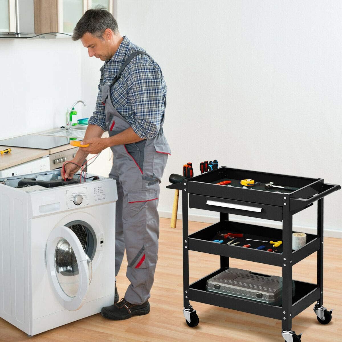 Goplus 3 Tier Rolling Tool Cart, 330 LBS Capacity Heavy Duty Utility Cart Tool Organizer with Storage Drawer, Industrial Commercial Service Tool Cart for Mechanics, Garage, Warehouse & Repair Shop