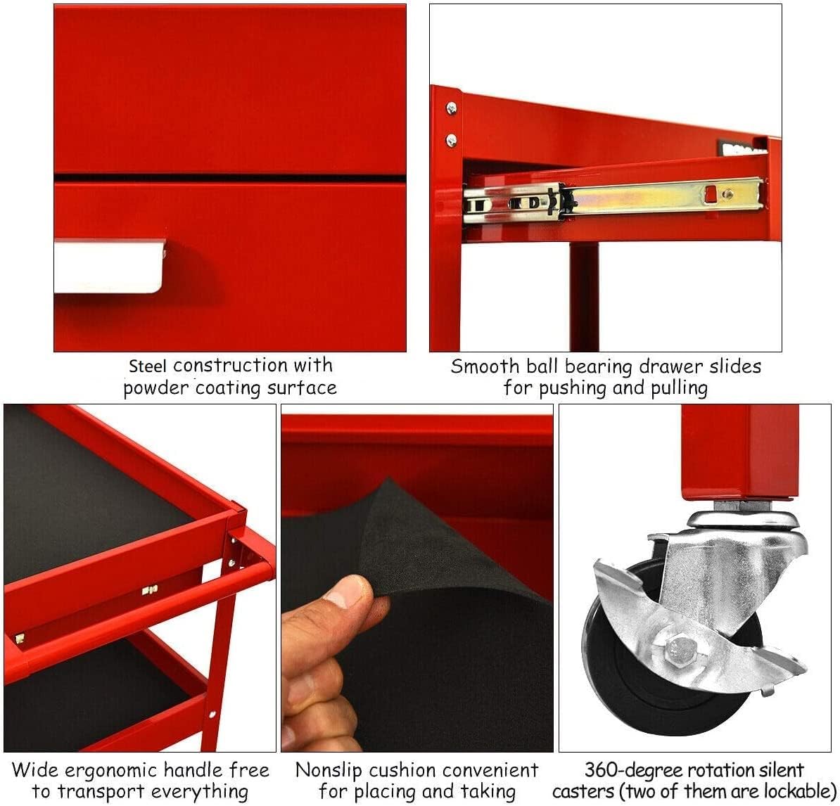 - 🛠️Sturdy & Durable Construction: Built with heavy-duty steel, our tool cart on wheels is super durable. This tool cart for mechanics features the weight capacity up to 330 lbs. The bright surface is completed with a powder coating finish for superior resistance to rust and corrosion, and easy to clean.