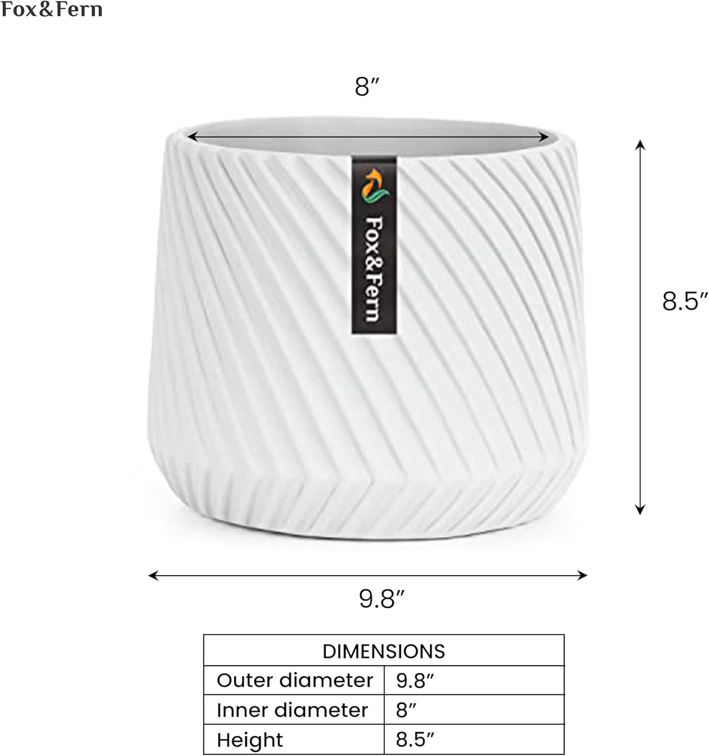 Fox & Fern 10 Inch Plant Pot with Drainage Plug — Premium Polystone White Plant Pot; Modern Planter with 3D Texture and Ceramic Finish; 10 Inch Pots for Plants Indoor & Outdoor