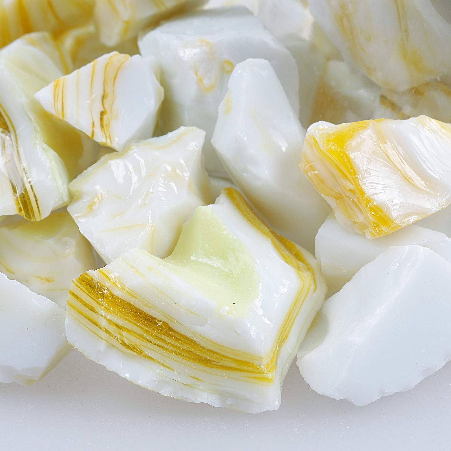 High Luster Reflective Fire Glass Gravel,Fire Gems,Fire Drops,Fire Glass Stones Chips for Fire Pit Fish Tank Aquarium Garden,1-2cm(3/8''-6/8''),540g/1.19lbs (China Yellow)