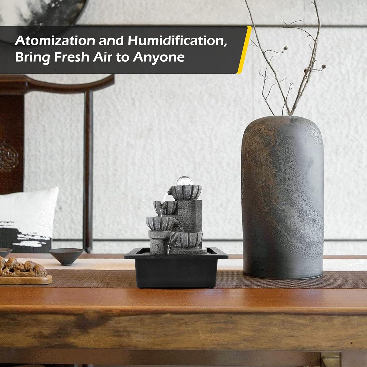 - [Purify Air]- The relaxation tabletop fountain comes with LED lights, which can add beauty to any room decor. With the flow of water, the flowing water from the indoor desktop fountain can increase the air humidity in the room and can bring fresh air to anyone.