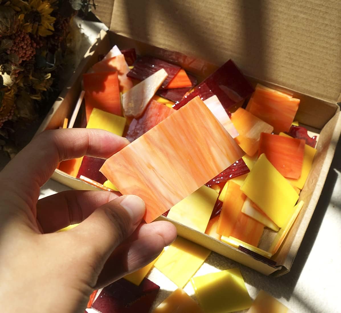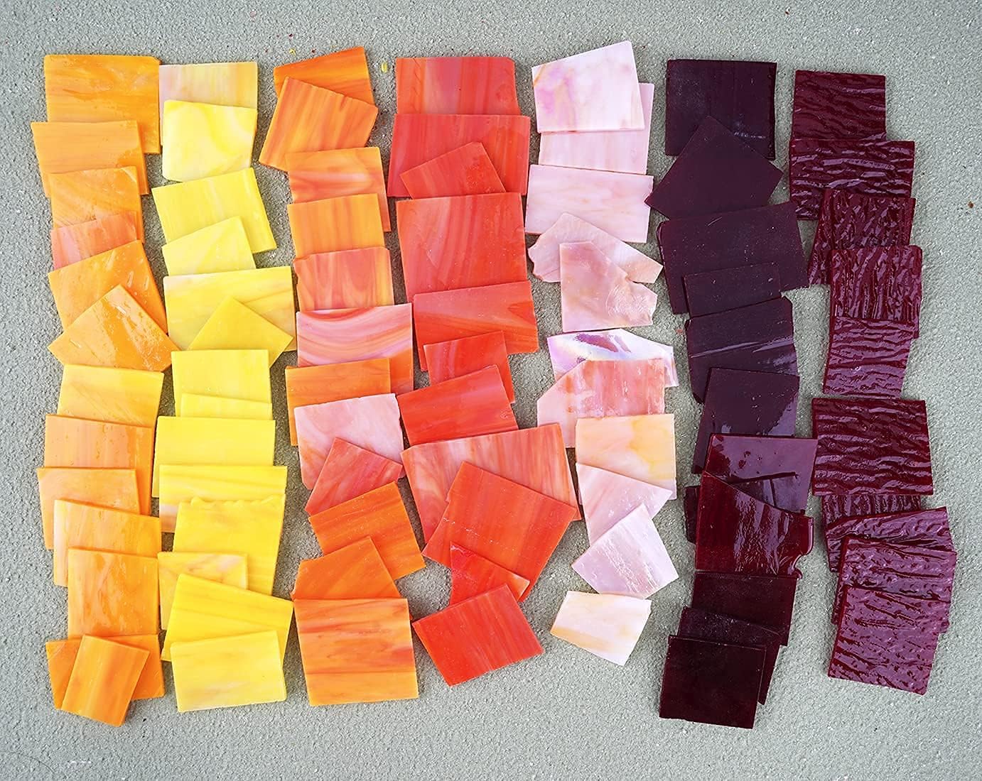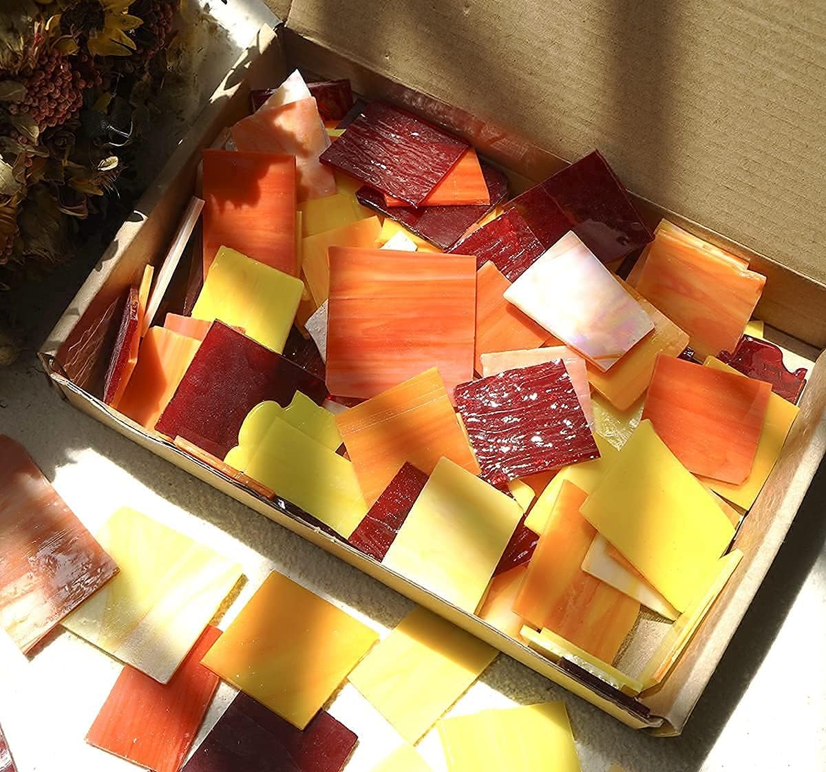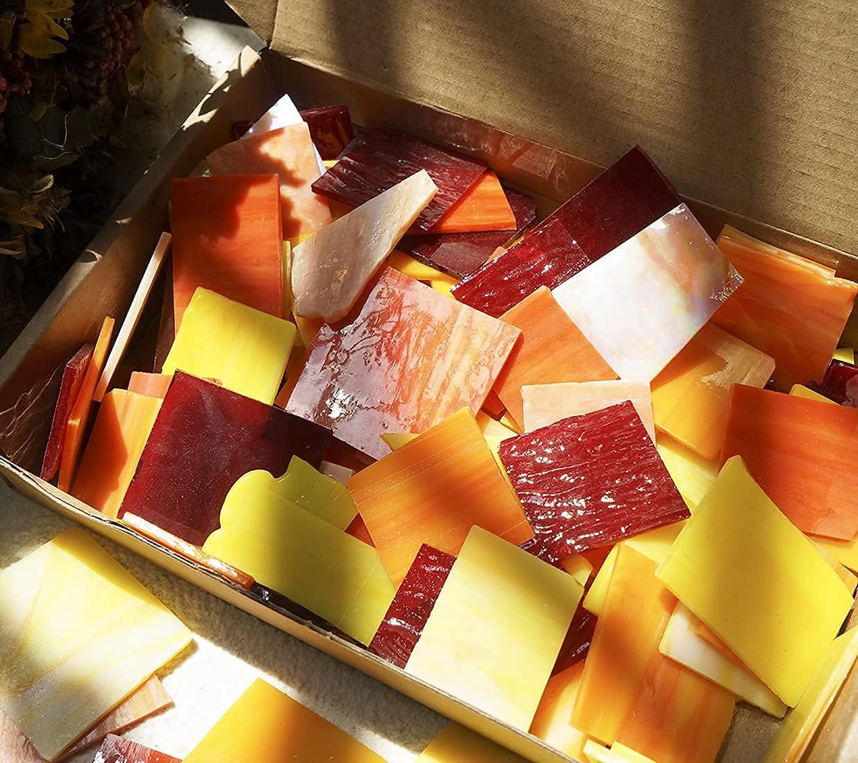 Lanyani Stained Glass Sheets Pieces, Glass Mosaics Tiles for Artwork and Crafts Art Projects, 35oz Value Pack, Flame