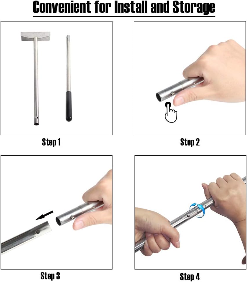 - EASY TO INSTALL & STORAGE - The ash rake is composed of two parts, just need to press the button which is in the middle of the handle to connect with another part is finished installation, labor-saving and simple operation; Two-pieces design saves the storage space and easy to carry when you go out grilling