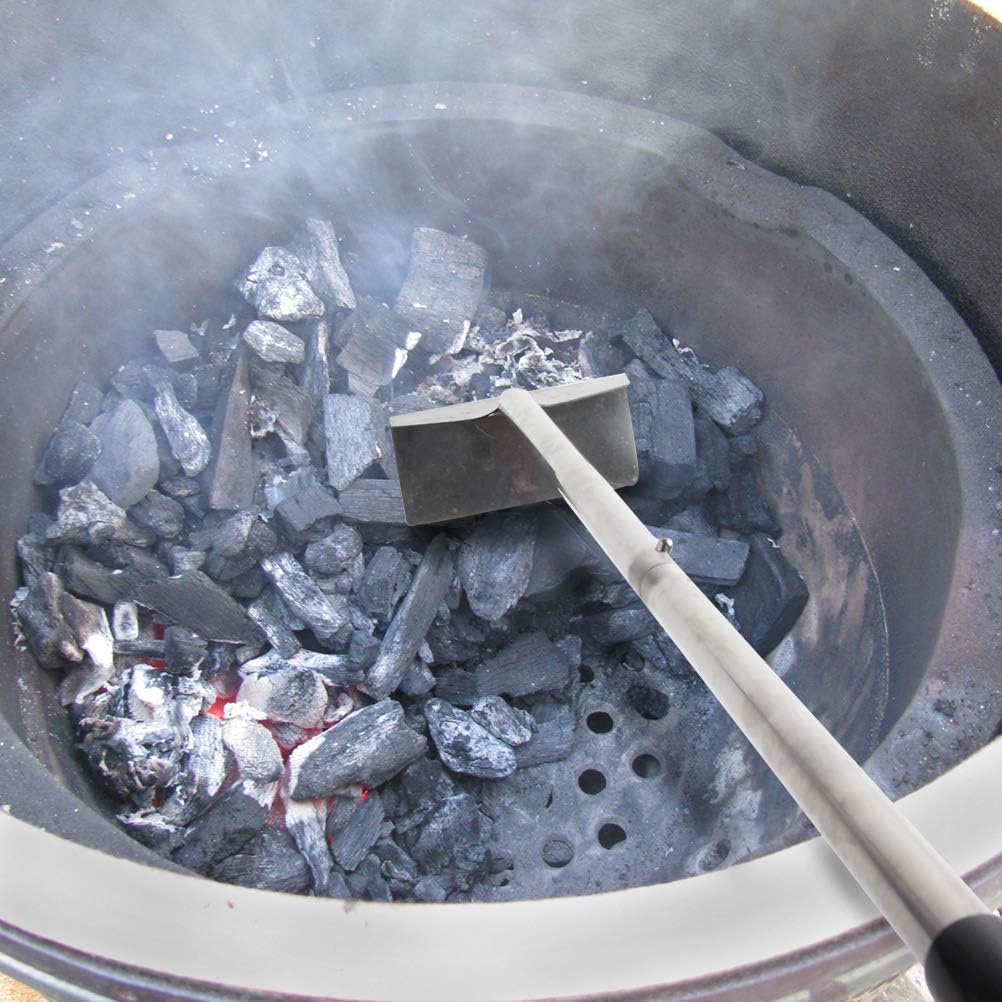 - SAFELY MOVE AND ARRANGE HOT COALS - Using this ash rake makes it easier to move and mix your hot coals around which saves a lot of time and also helps you create or switch the temperature zones, keep them evenly lit on your grill; Fit for cleaning out wood stoves ash, fireplaces and Big Green Egg, Kamado Joe, Weber Kettle and other charcoal smoker