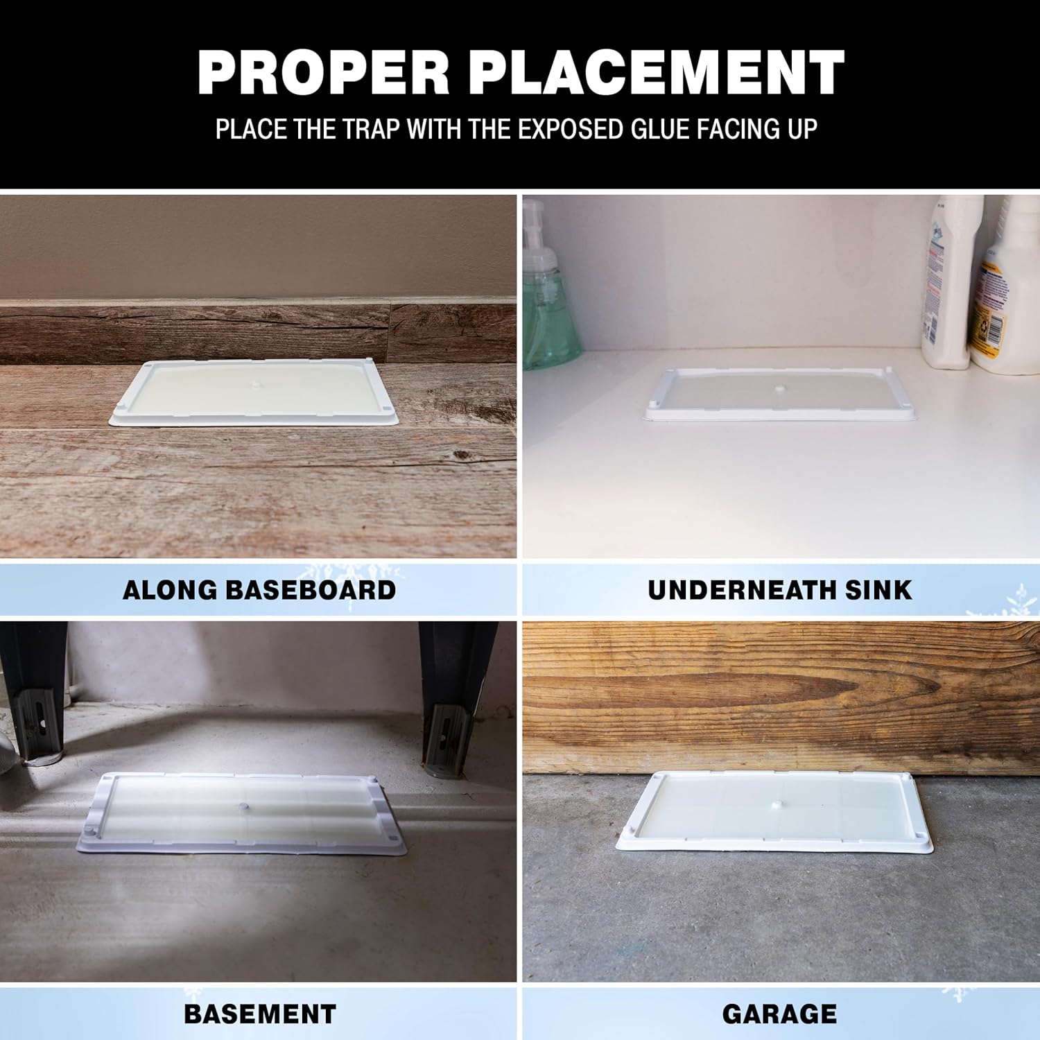 - READY TO USE: Cold Weather Glue Traps are designed to trap mice, crickets and crawling pests. These odorless glue trays work in all types of environments, but are specifically intended for the cold. Place glue boards along known or suspected rodent pathways to trap uninvited rodents. For best results, do not add bait as it decreases the effectiveness of the trap.