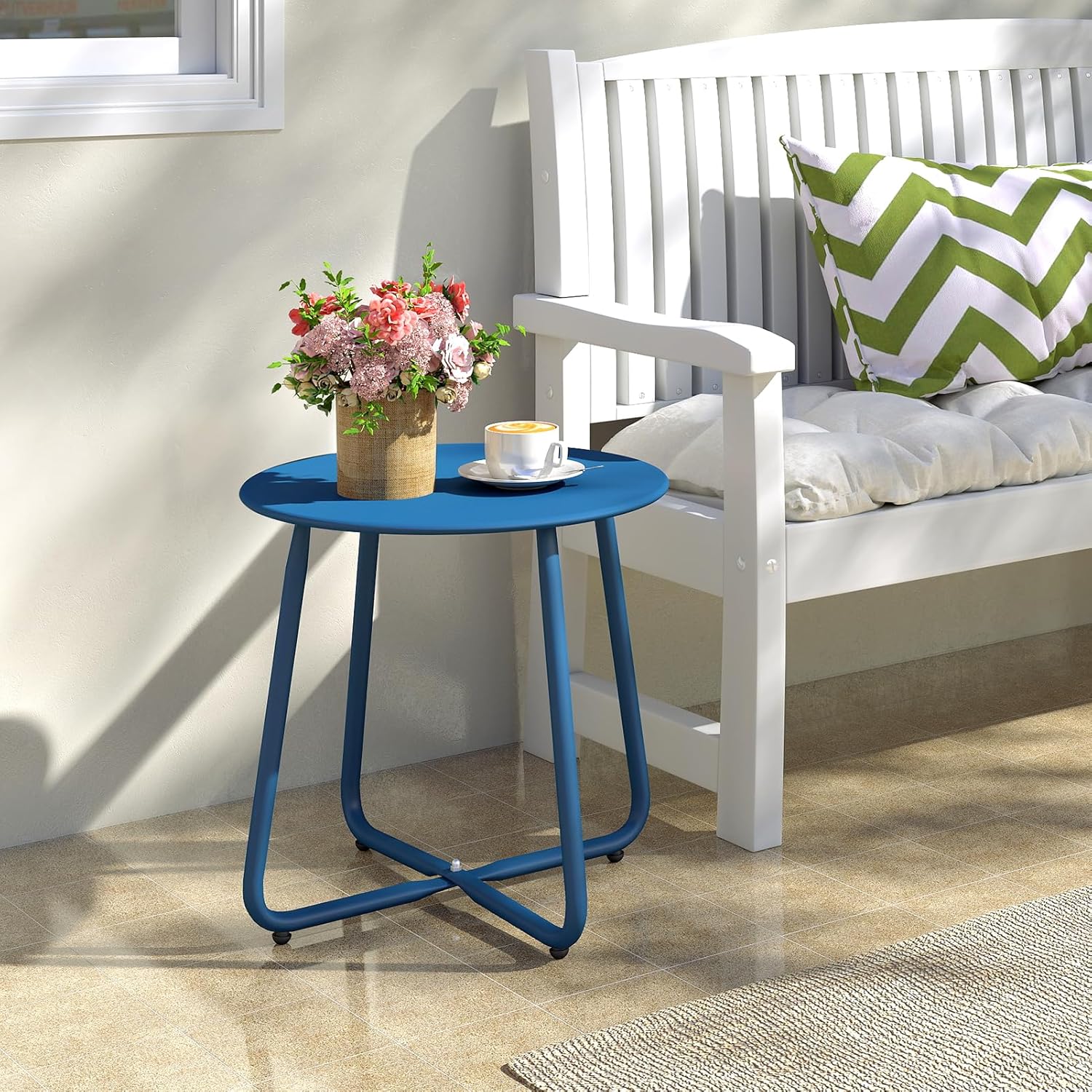 HollyHOME Round Metal Side Table, Rust-Resistant Patio Small Plant Stand, Outdoor 17.32'' Portable End Table for Balconies, Gardens, Living Rooms and Bedrooms, Navy Blue