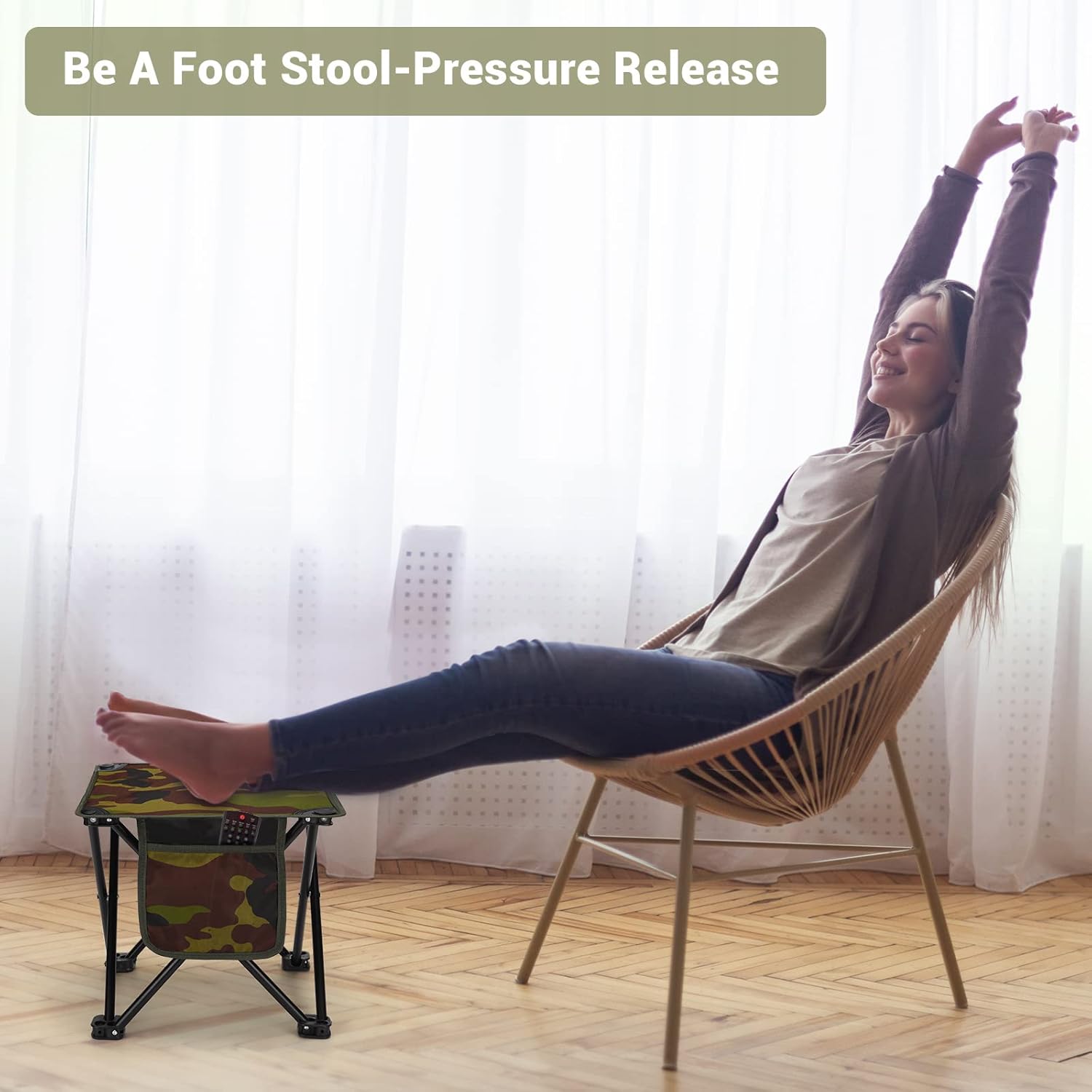 - ☛ COMFORTABLE :Folding camping stool provide strong support with 4 legs which keep sturdy no wobbling on the beach or outdoor