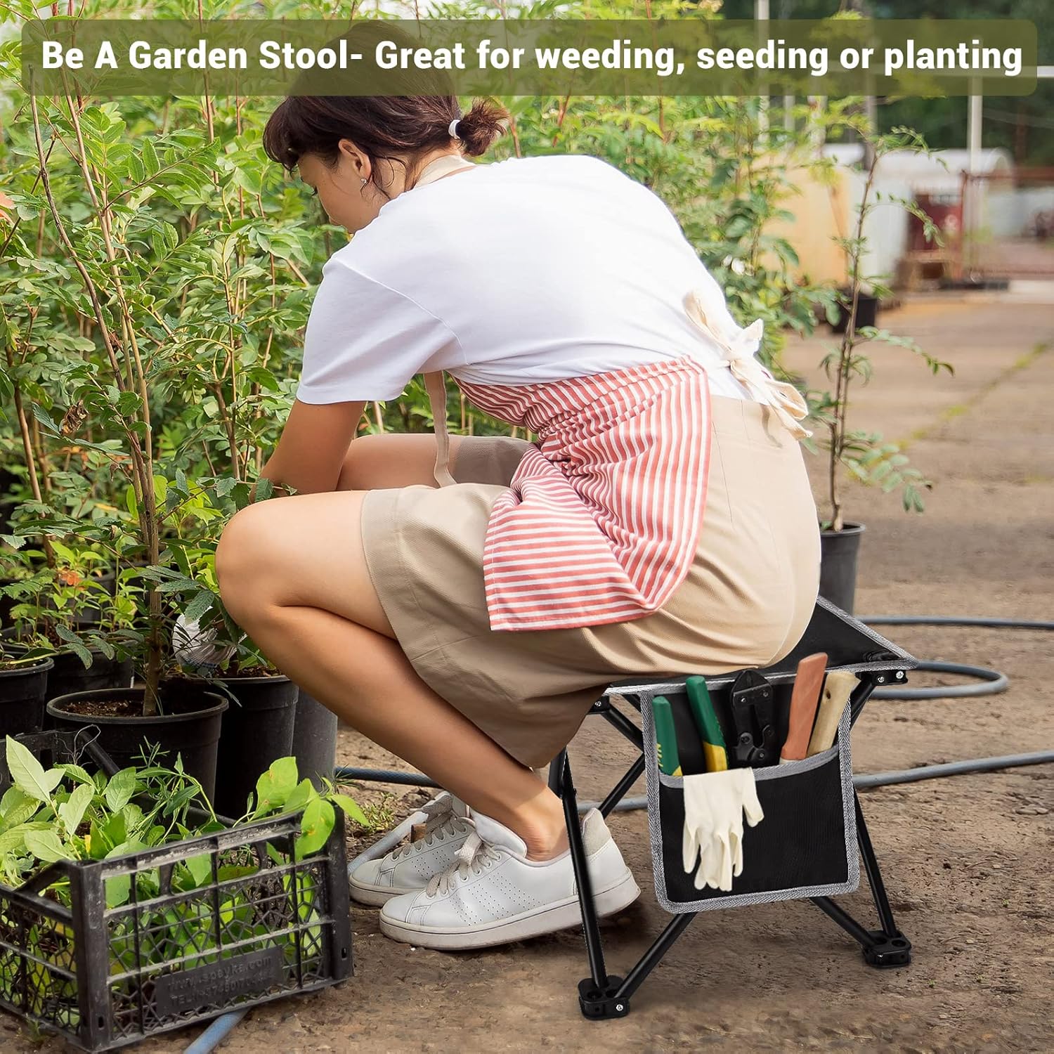 - ☛Our folding stools are widened and heighted to overcome the discomfort of sitting on low stools.Other height general size is 9.4 inches.Ours Unfold Size: 13.4"L x 13.4"W x 12.5 "H; Folding Size:16"Lx4.5"Wx4.5H"