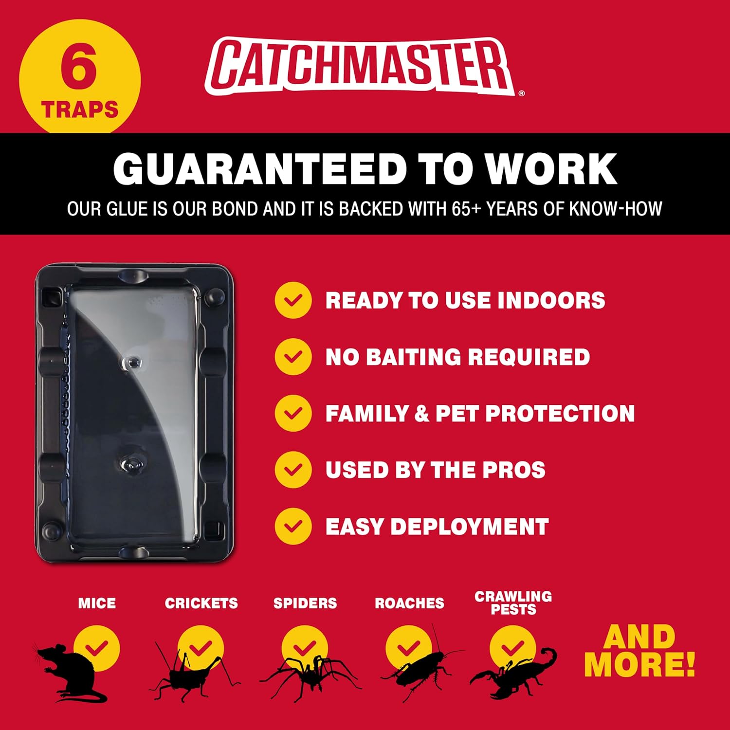 Catchmaster Mouse & Insect Glue Traps 6-Pk, Adhesive Rodent & Bug Catcher, Mouse Traps Indoor for Home, Sticky Glue Boards for Mice and Insects, Pest Control for House & Garage