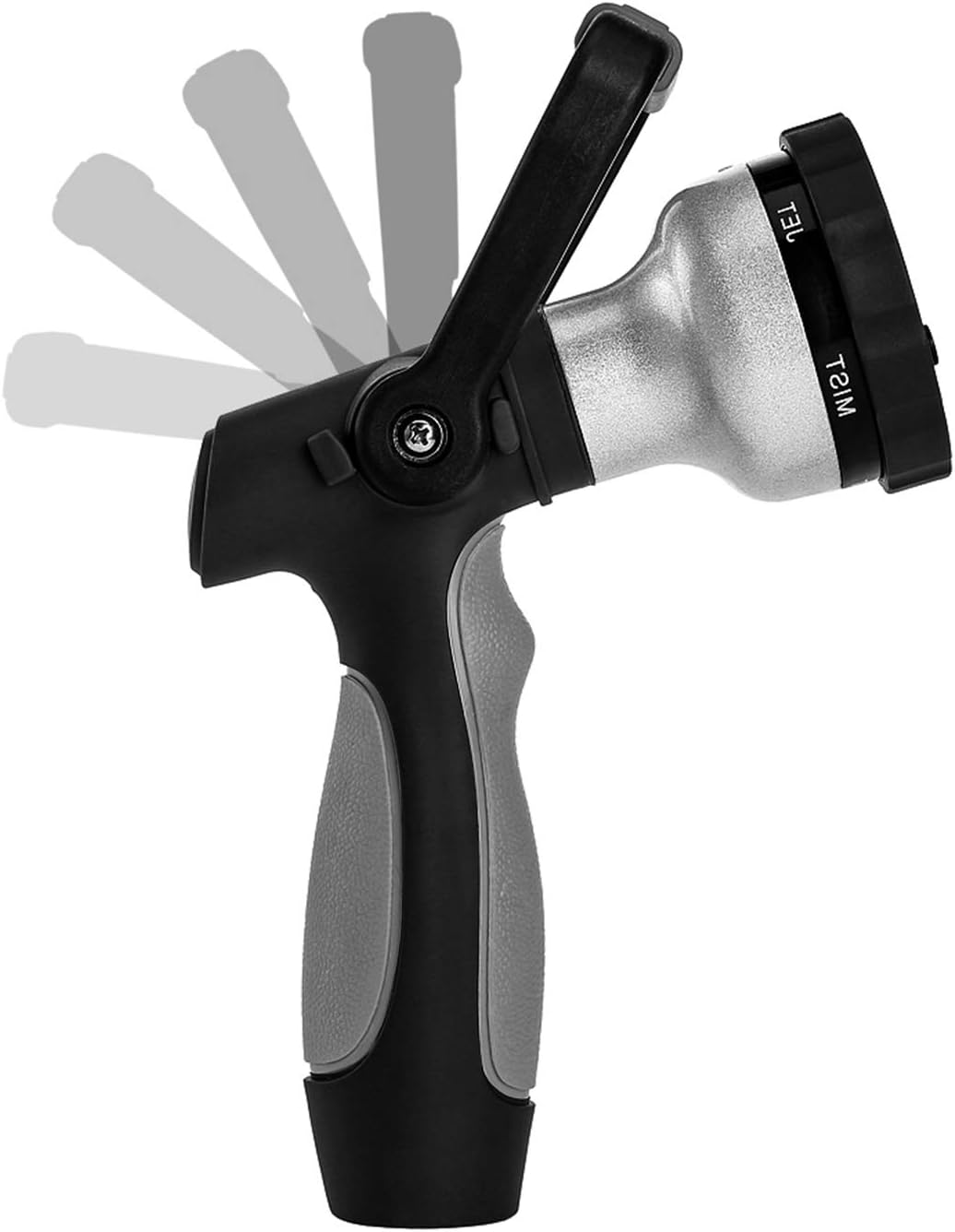 - ERGONOMIC LABOR-SAVING DESIGN. High pressure nozzle with ergonomic handle perfectly combines with both performances - comfort of use and control precisely. Large handle can be easily switched ON and OFF for all ages of garden lovers. It stays in the " ON " position without having to hold on to a trigger the entire time like the regular garden nozzle. The ON / OFF lever gives total control over the water pressure being released through the spray