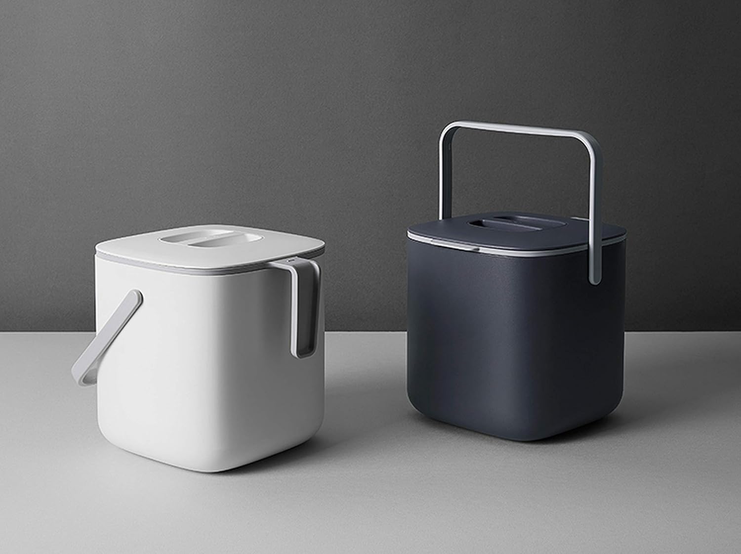 Litem Food Waste Basket Bin – a countertop Bucket with Extra Long Handles for Your conveniences 0.68 Gallons (2.6L) (Dark Gray)
