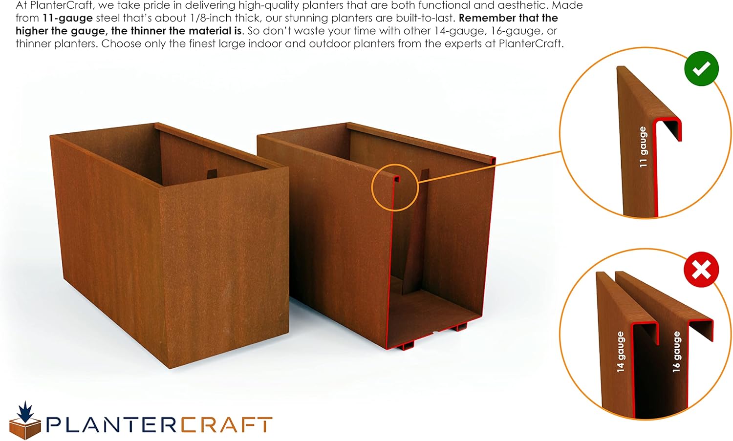 - HEAVY-DUTY AMERICAN CRAFTSMANSHIP: Proudly crafted in the USA from thick, commercial-grade 11-gauge Corten steel, this large outdoor planter box is built for extreme durability. The robust, fully welded construction ensures it will withstand the elements for years without warping or deteriorating, making it a true lifetime investment.