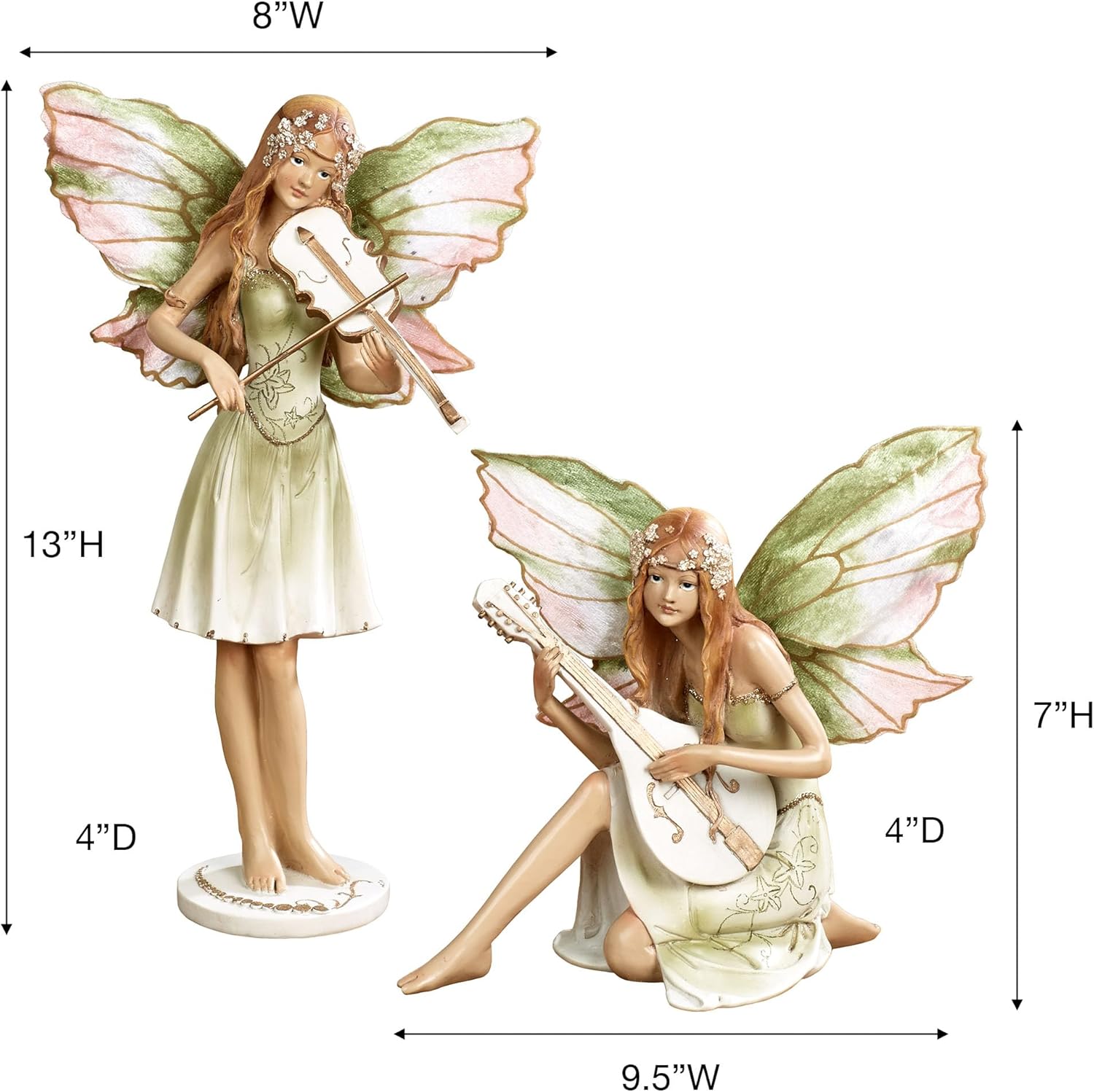 Fairy Concerto Figurines Green and Pink Tones 8-9.5" Wx4 Dx7-13 H Set of 2