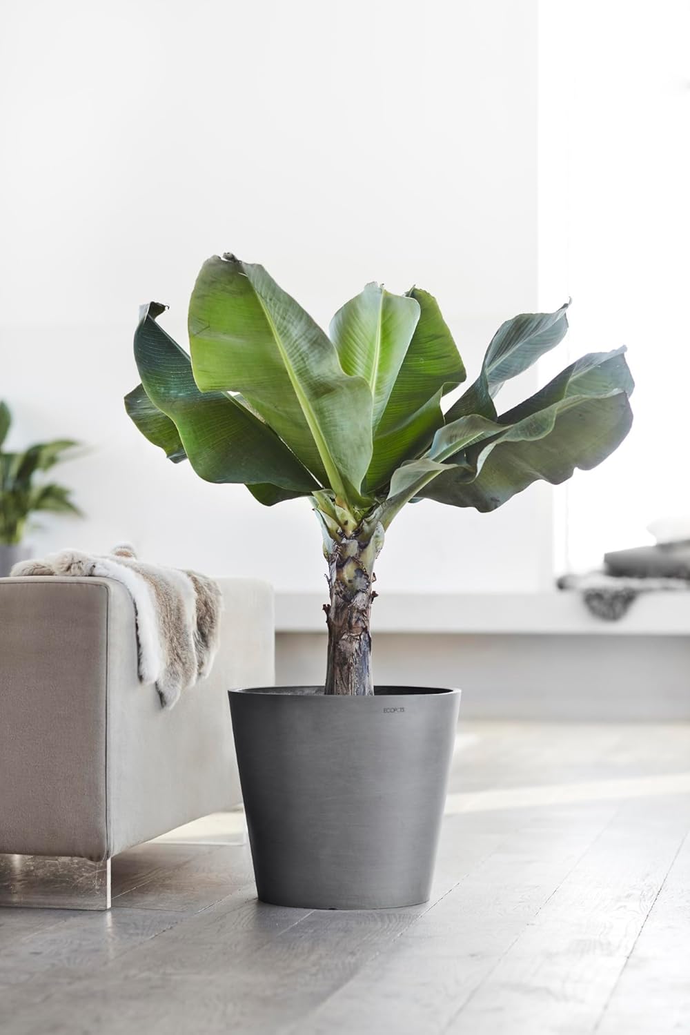 Ecopots Amsterdam Durable Modern Round Indoor/Outdoor Recycled-Based Composite Flower Pot Planter, Grey, 16"