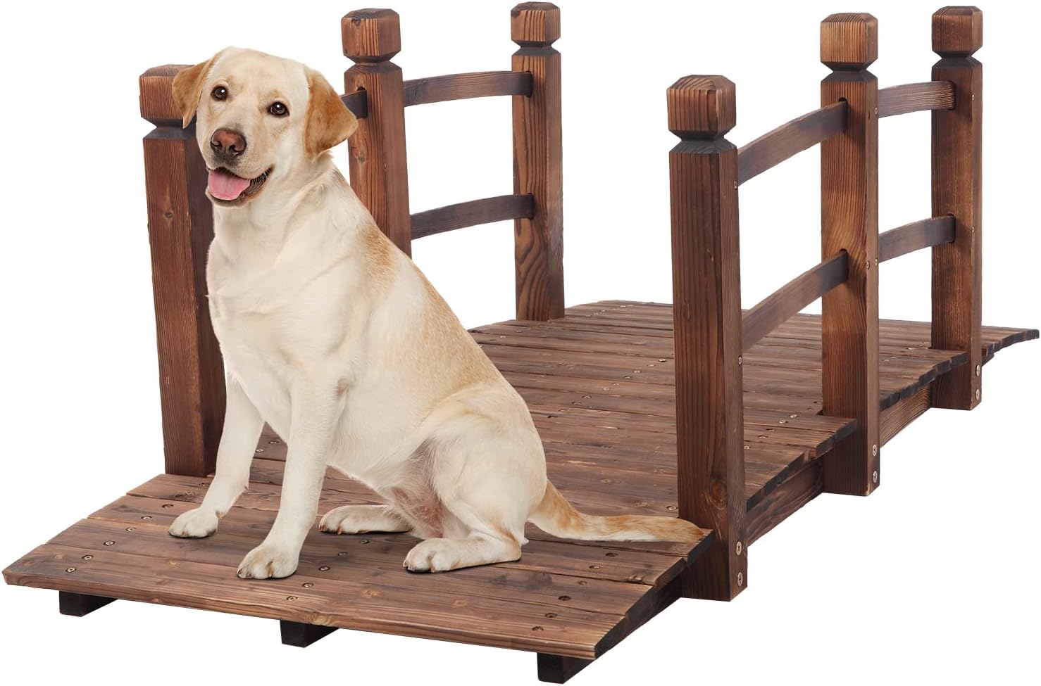 - ✔ [Decorative Bridge] Carbonized finished fir wood makes it a beautiful and rustic additional walkway to your garden, yard, creek or farm. Dimension: 59"(L) x 28"(W) X 21"(H)