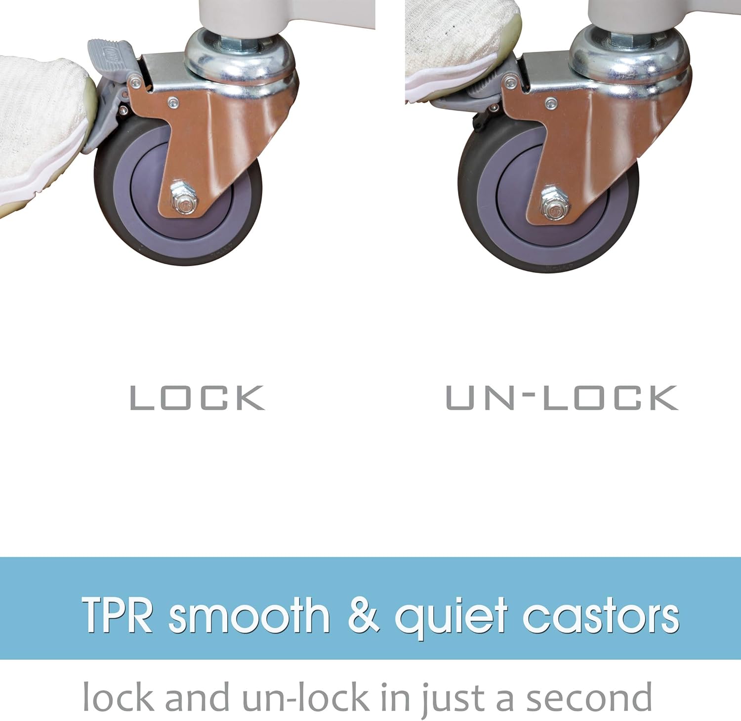 - HEAVY DUTY COMMERCIAL GRADE: made of commercial reinforced Polypropylene with fiber glass in shelves, can hold up to 606 lbs per cart, the advanced design makes shelves top flat and sturdy !