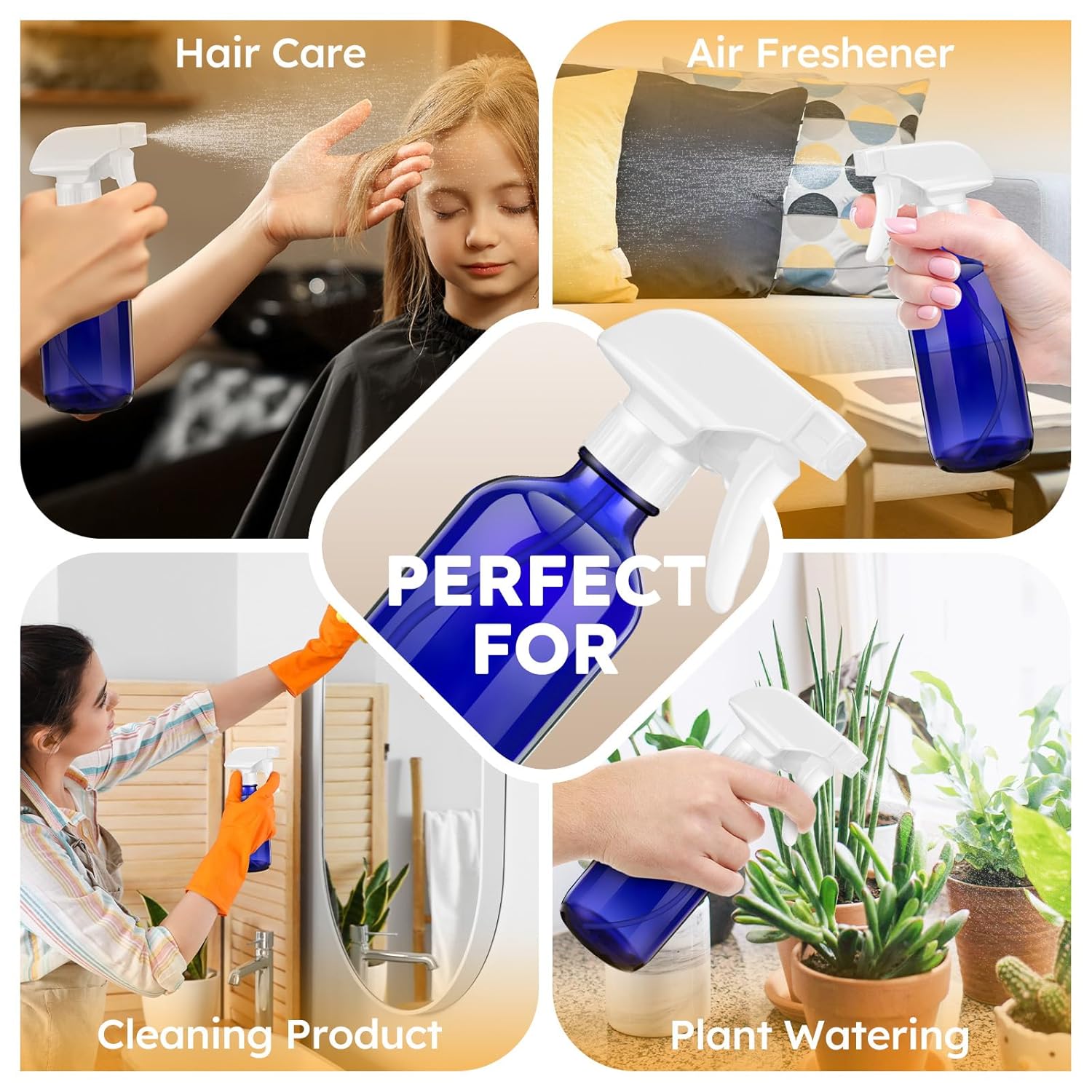 - For Protection : The natural blue glass bottle protects against harmful UV rays and protects sensitive essential oils, detergents and bleach mixtures.The BPA-free materials keep your families safe from chemicals as well.