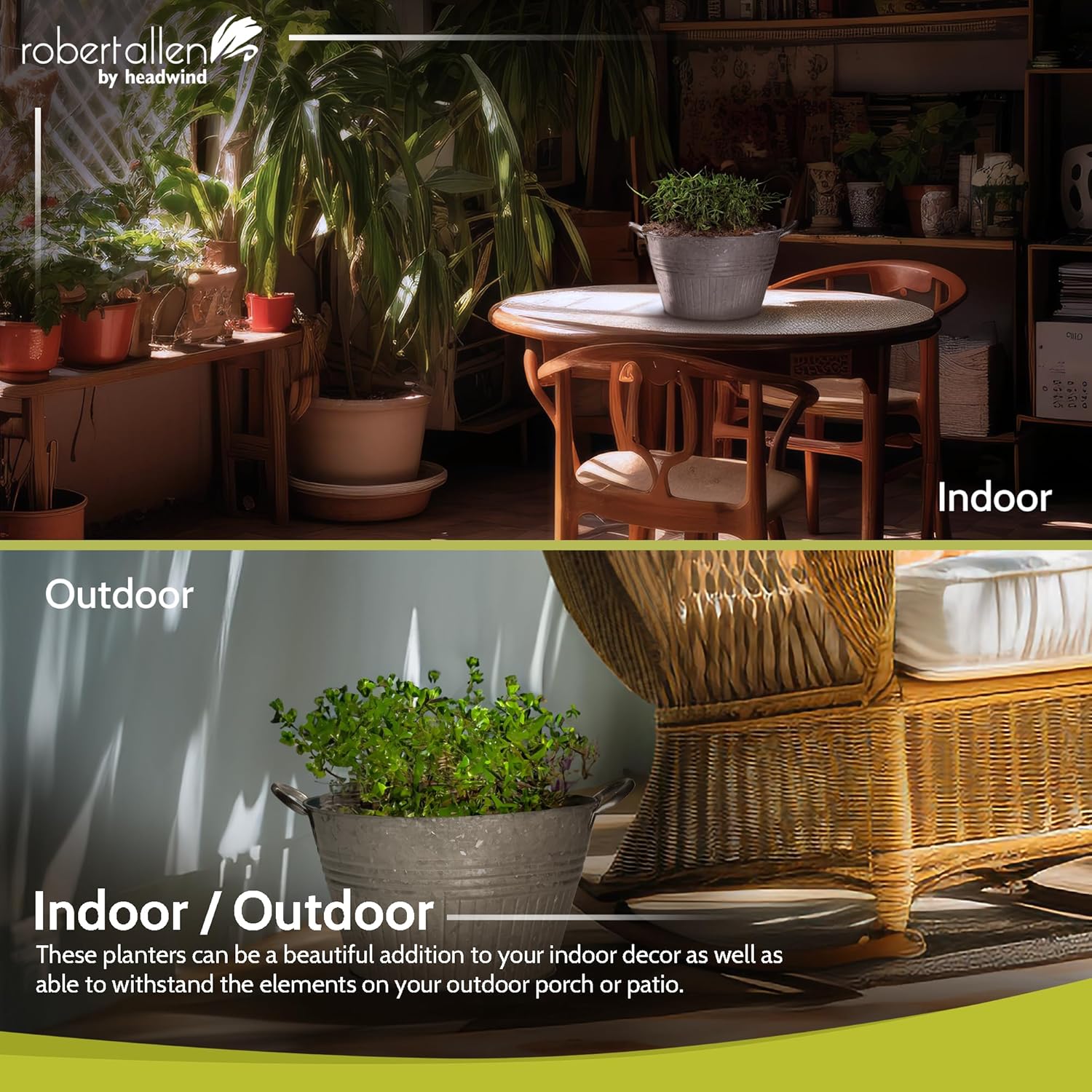 Headwind Round Galvanized Tub Planter with Handles – 16 Inch Lightweight Metal Planter with Drainage Hole – Galvanized Steel Tub for Plants - Metal Flower Pot by Robert Allen