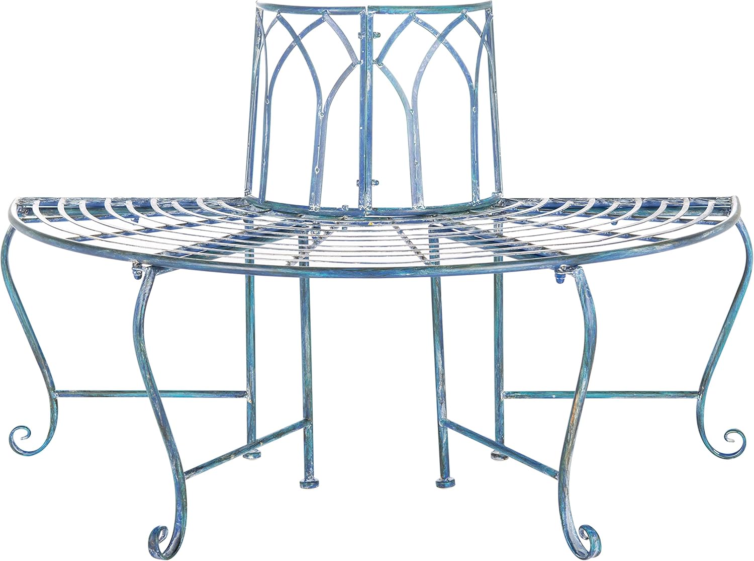 SAFAVIEH PAT5018C Outdoor Collection Abia Antique Blue Wrought Iron 50-inch Tree Bench