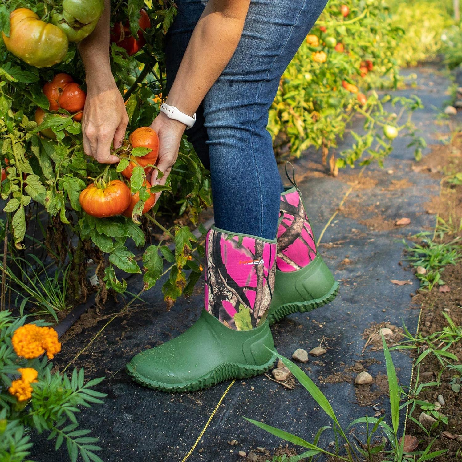 HISEA Women's Rubber Garden Boots Waterproof Insulated Yard Gardening Shoes Mid Height for Mud Working Outdoor